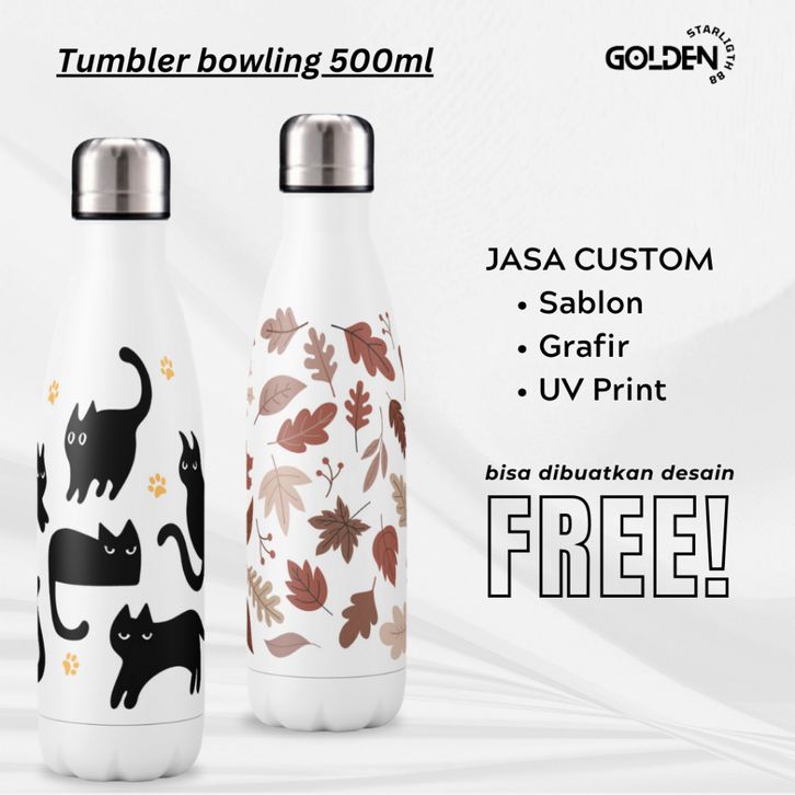 Tumbler Botol Bowling AIR PANAS DAN AIR DINGIN Double Wall Stainless Steel SUS 304 500ml TUMBLER CUSTOM