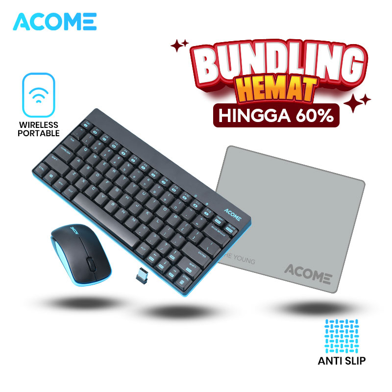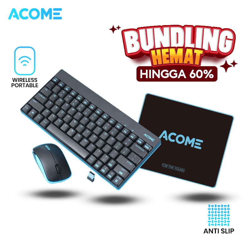 Keyboard & Mouse Acome Portable 1600 DPI AKM2000 Murah Origianal Berkualitas Terbaik Official Store Garansi Resmi 1 T