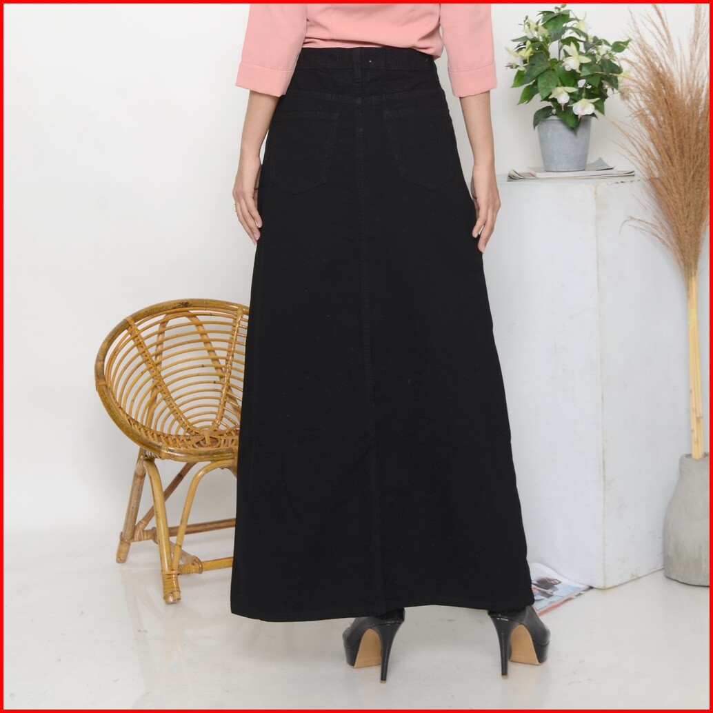 Bandidas - Highwaist Rok Jeans Panjang Wanita Kancing 1 Hitam