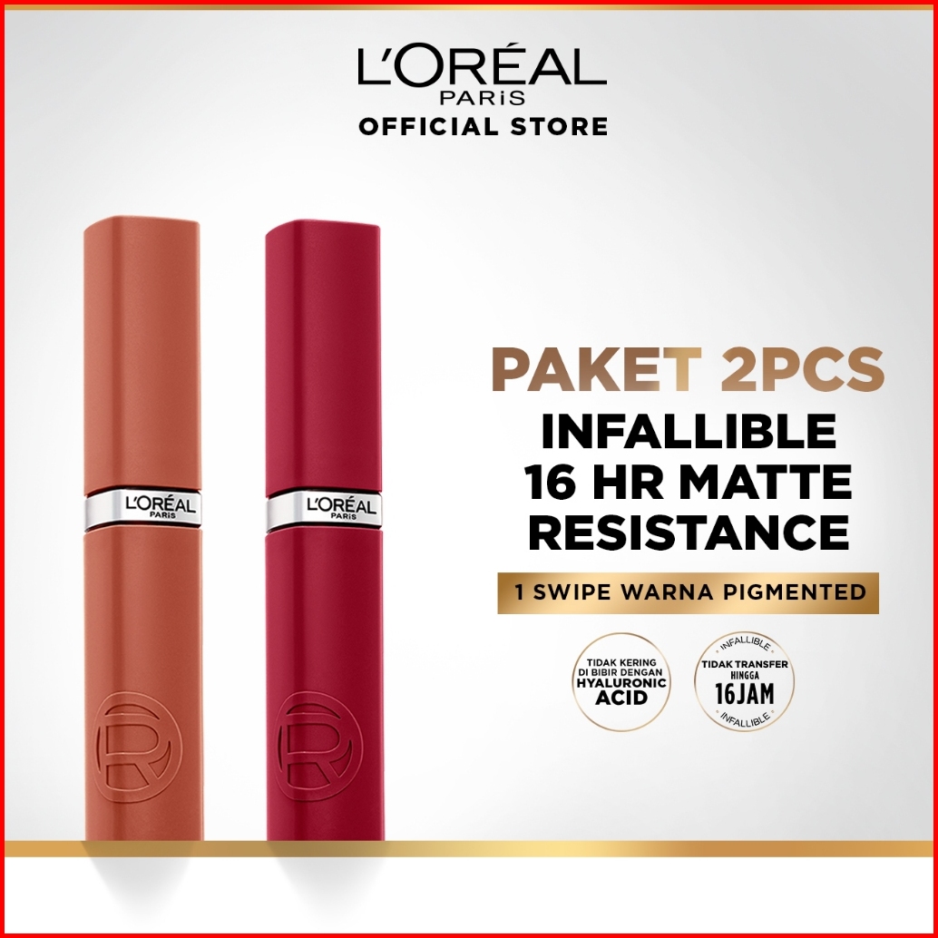 Paket Hemat 2pcs Lor Al Paris Twinpack Infallible Matte Resistance Liquid Lipstick For 16h Long Lasting Matte Lips Proof