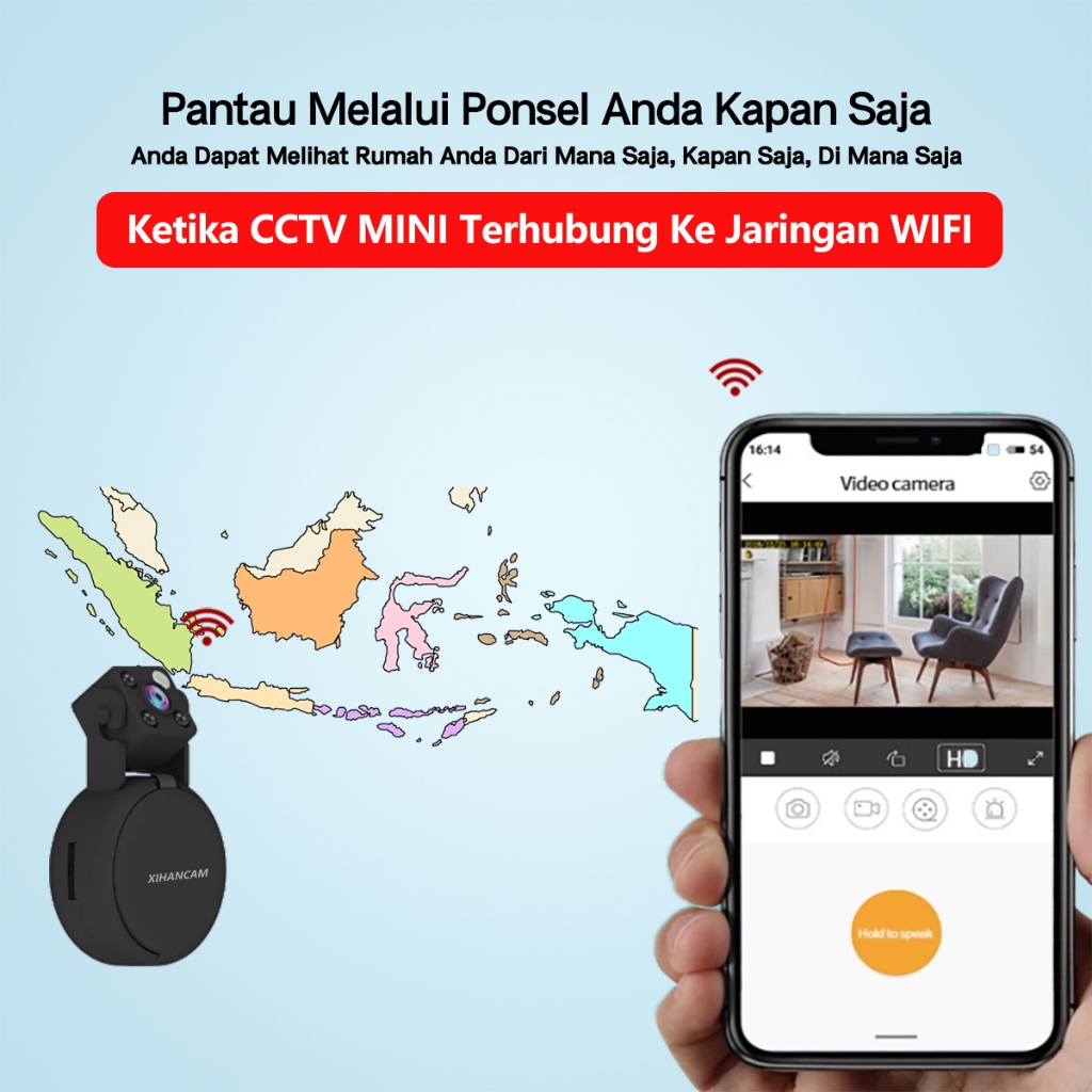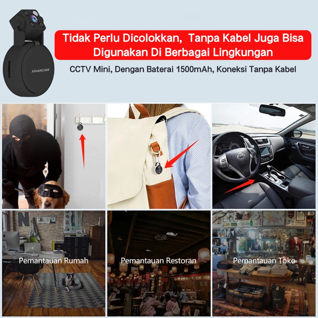 XIHANCAM CCTV Mini Baterai Spy Cam Wifi CCTV Kecil Spy Kamera Mini Tersembunyi Tanpa Kabel buat HP