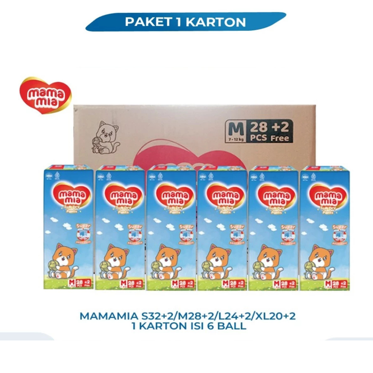 POPOK BAYI MAMAMIA SOFT DRY PANTS S32 M28 L24 XL20 +2 ISI 6 BALL PAMPERS NEW BORN PEMPES TIPE CELANA 1 KARTON MURAH