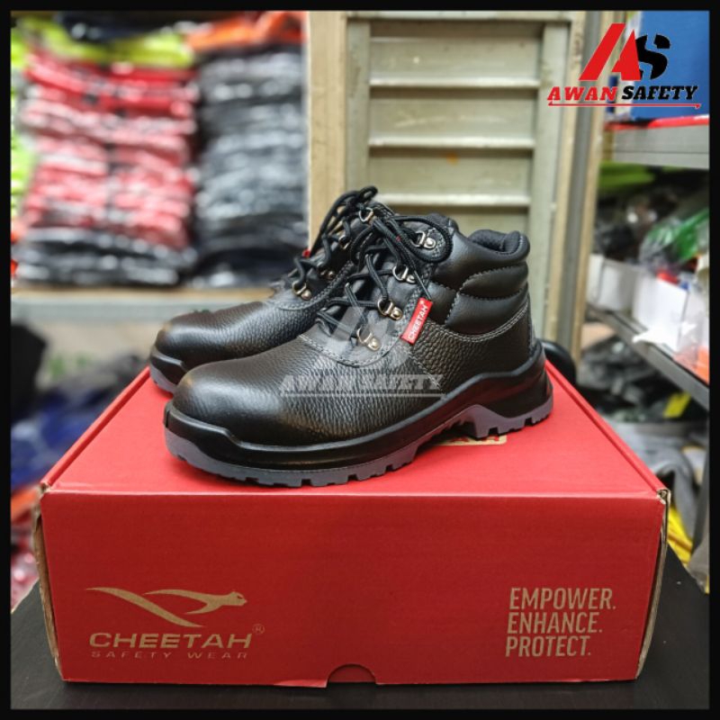 Sepatu Safety CHEETAH 7106H Black/ Sepatu Kerja Pria Septy Cowok Kulit Asli Besi Original