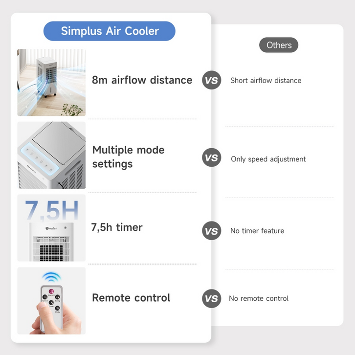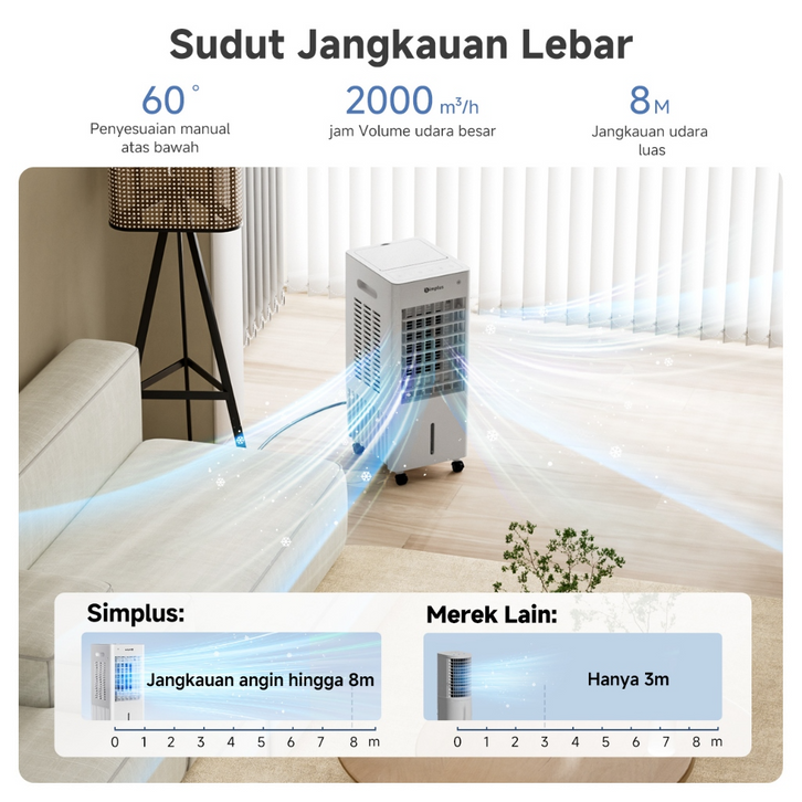 Simplus Air Cooler Kipas Angin AC Portable Pendingin Ruangan Tangki 10L Jangkauan Udara Luas Air Cooler dingin terbaik
