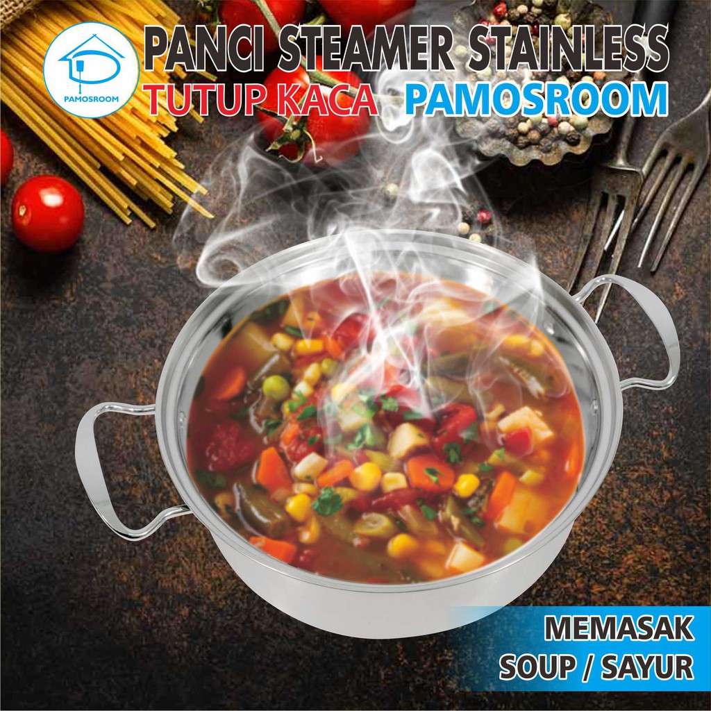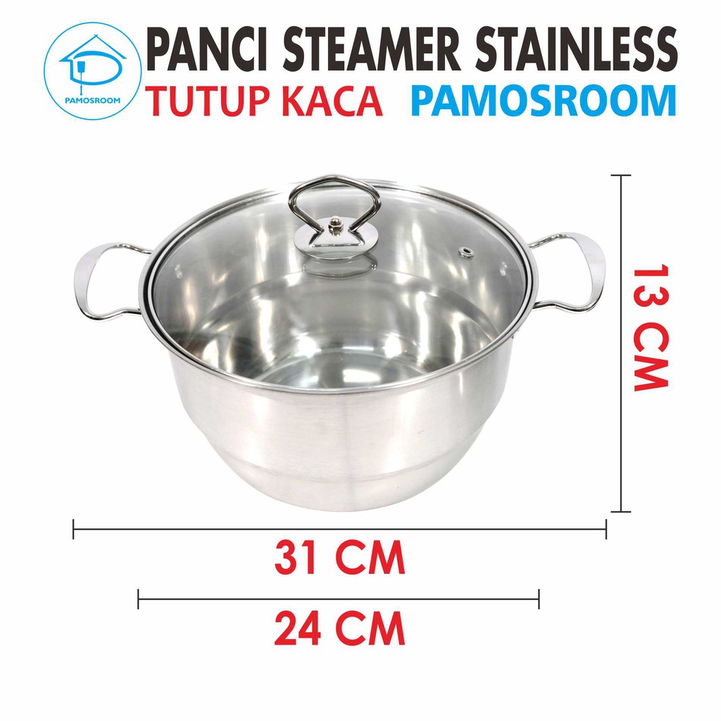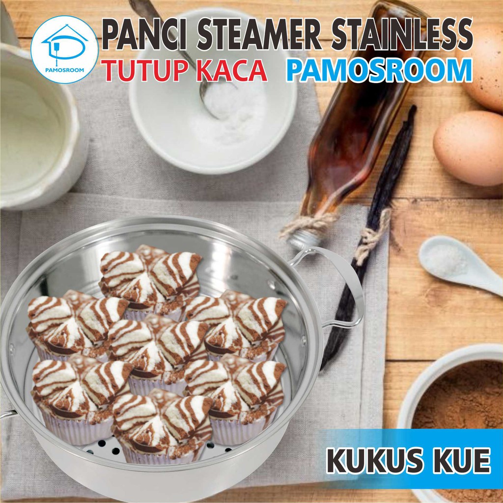 Calypso Panci Steamer Stainless 24Cm Tutup Kaca 24 Cm Free Kukusan