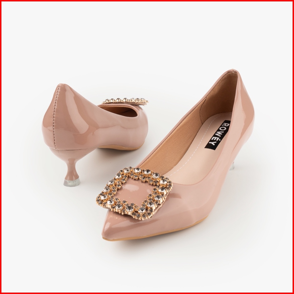 Rowey Sepatu Heels Wanita Mewah Hak 4cm Kitten Heels