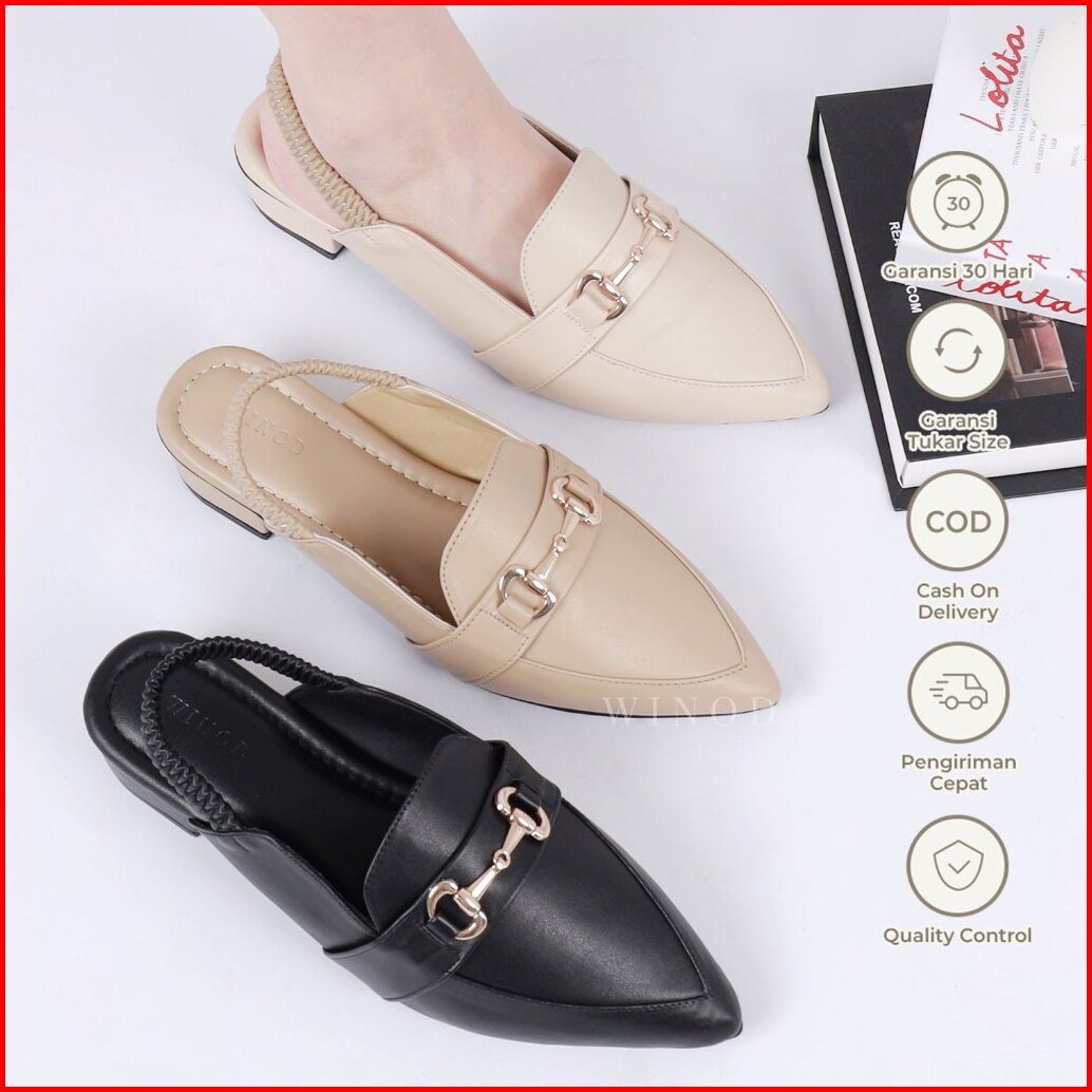 Winod Sitha Mules 3cm Flatshoes Hak Tinggi Kerja Model Casual Sepatu Slip On Daily Raya Lebaran