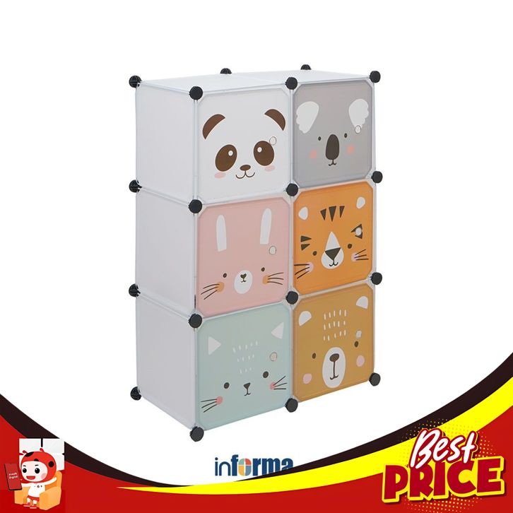 Informa Lemari Pakaian Plastik Multifungsi Animals Series Wardrobe Storage Kabinet Tempat Simpan Baju Lemari Pintu Ayun