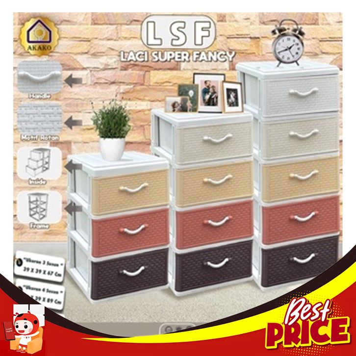 AKAKO LEMARI PLASTIK LACI 3 4 5 SUSUN LSF WARNA WARNI FANCY MOTIF ROTAN