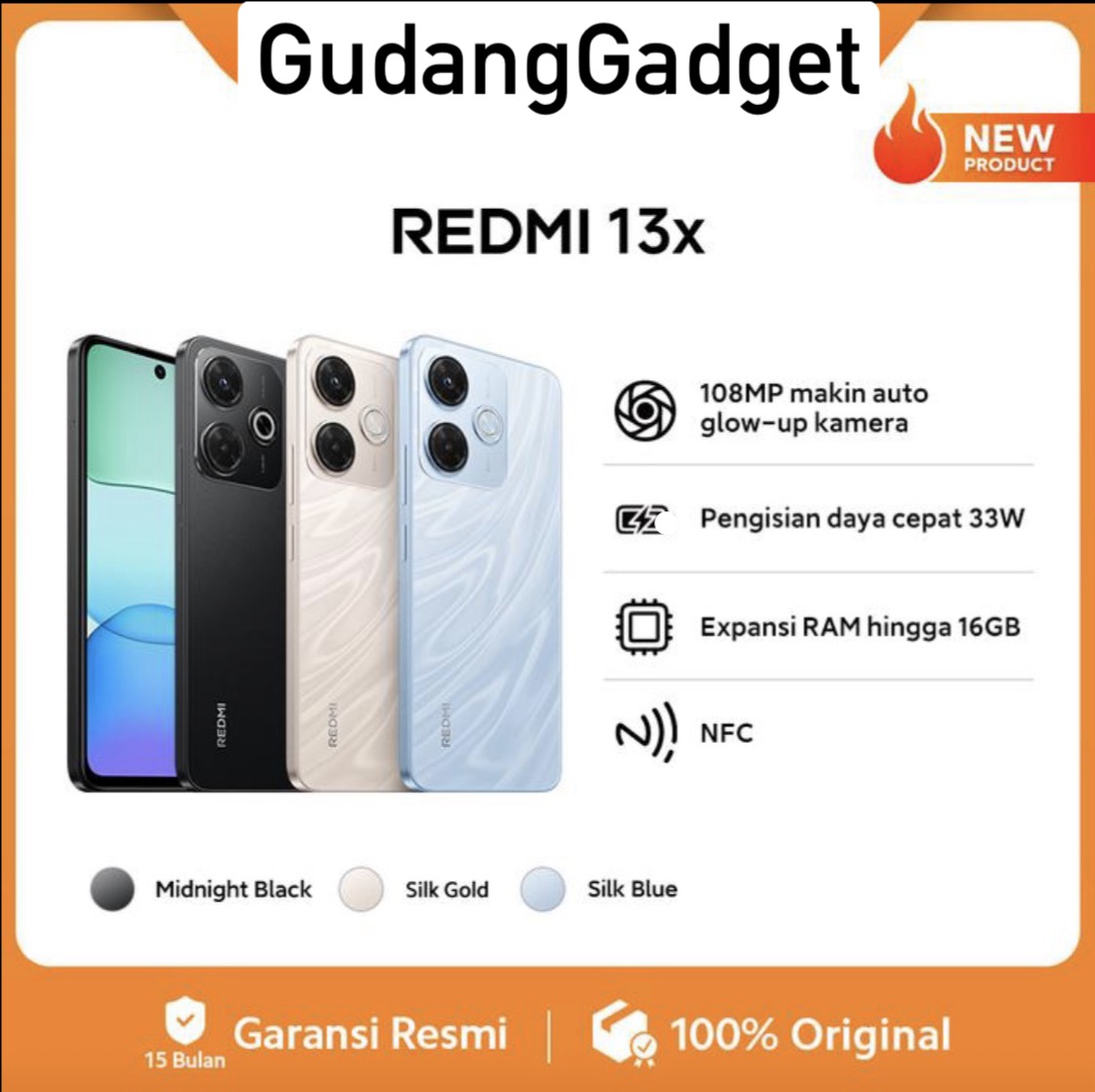 Xiaomi Redmi 13X NFC 8GB+256GB Garansi Resmi 15 Bulan