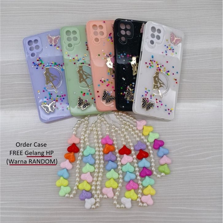 Case Free Gelang HP Fashion Redmi A1 / A2 / 10 5G / 11 PRIME 5G / 12C / 12 4G / 12 5G Manik Manik Motif Kupu Kupu