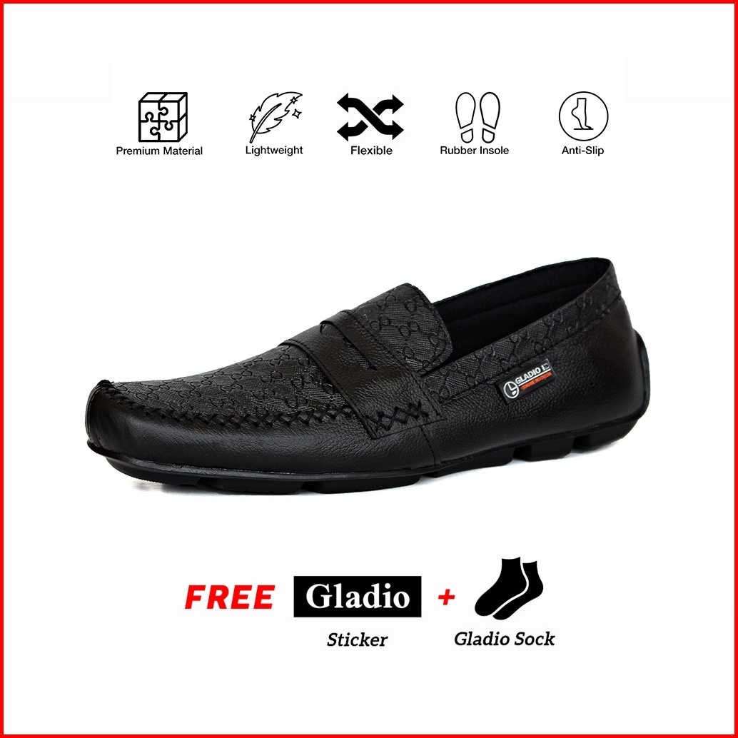 Sepatu Pria Gladio Slip On Kulit Gladio Verda Hitam