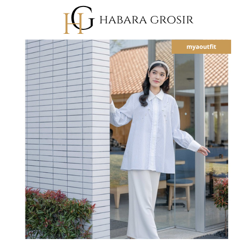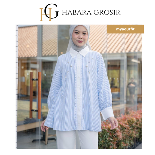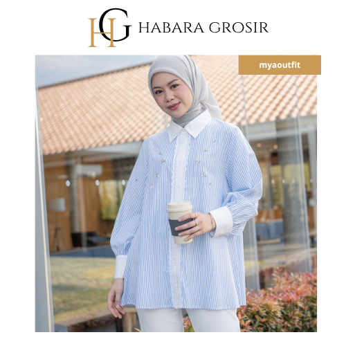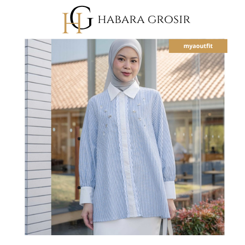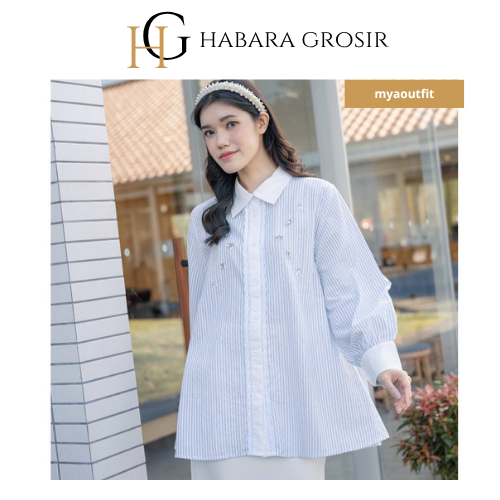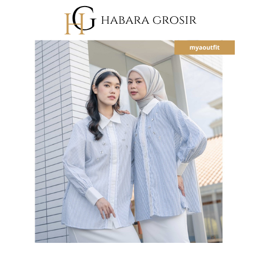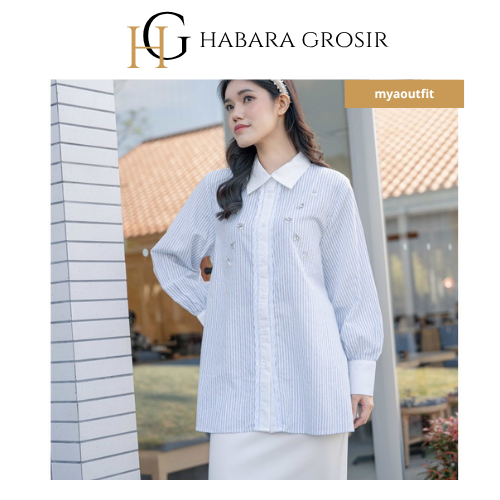 Kemeja Wanita Mayoutfit Daniesha Shirt Katun Stripe Aksen Payet Beads Kombi Renda Lace Brukat