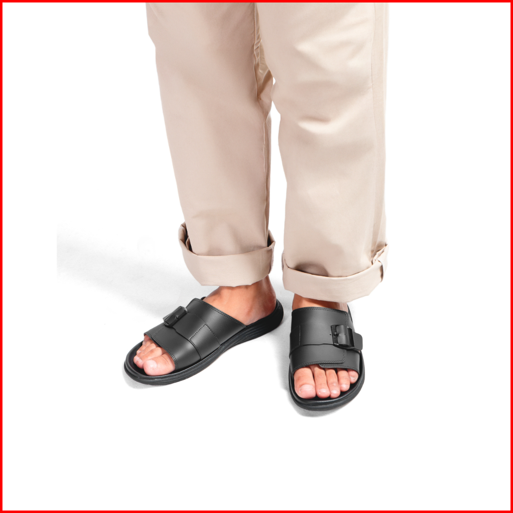 Tragen - Sandal Pria Sendal Slide Anti Slip Karet Hitam Casual - Monde Black