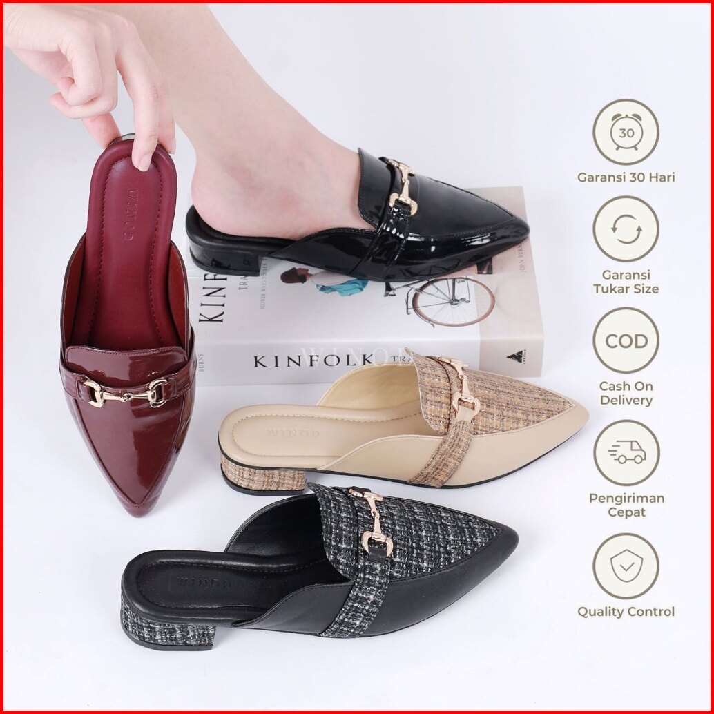 Winod Sharma Mules Hak 3cm Sepatu Selop Hak Tinggi Heels Wanita Daily Raya Lebaran