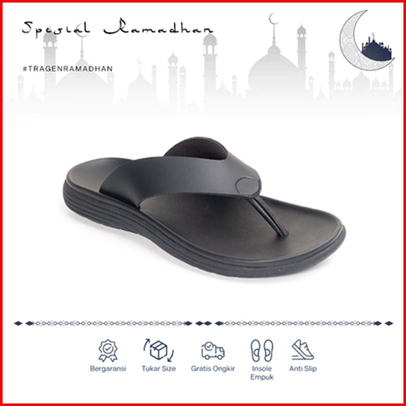 Tragen - Sandal Pria Sendal Jepit Flipper Anti Slip Karet Hitam Casual - Rusy Black