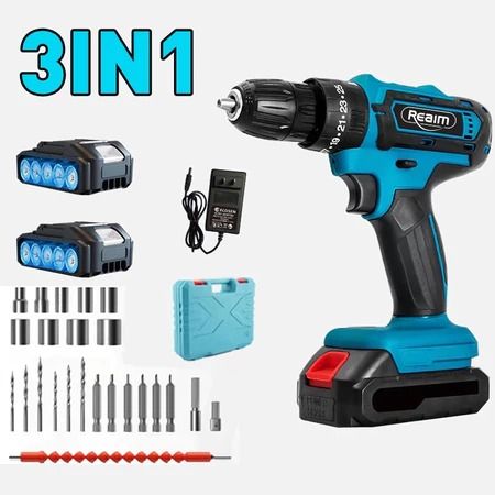 Reaim Mesin Bor Listrik 3-IN-1 Cordless Drill Bor Baterai Bor Listrik Bor Tanpa Kabel Bor Tanpa Kabel Besi Tembok Beton