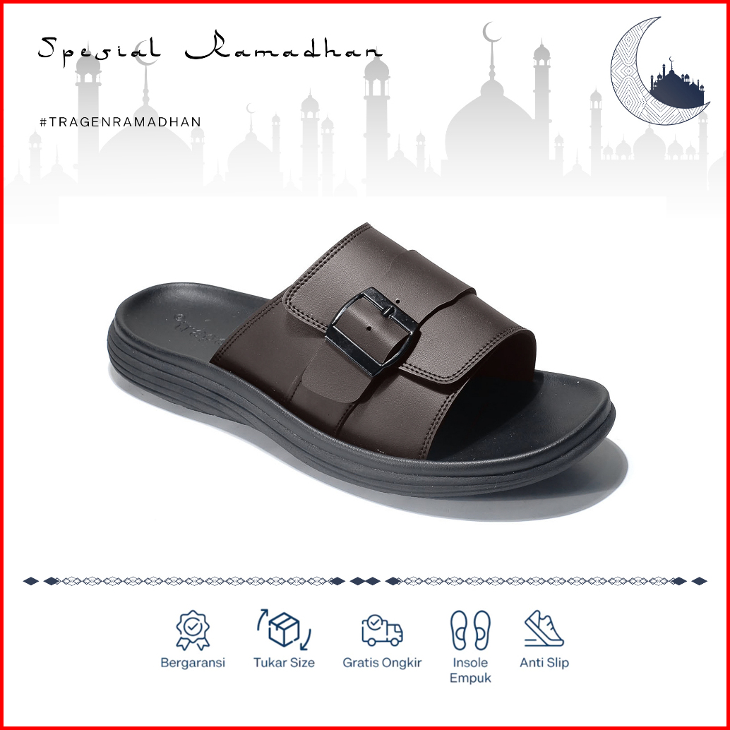 Tragen - Sandal Pria Sendal Slide Anti Slip Karet Casual - Monde Brown