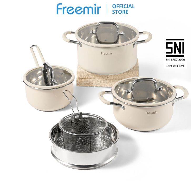 Panci Set New Freemir 8Pcs Lapisan Granit Anti Lengket Panci Susu Wajan Soup Wajan Penggorengan Set Alat Masak
