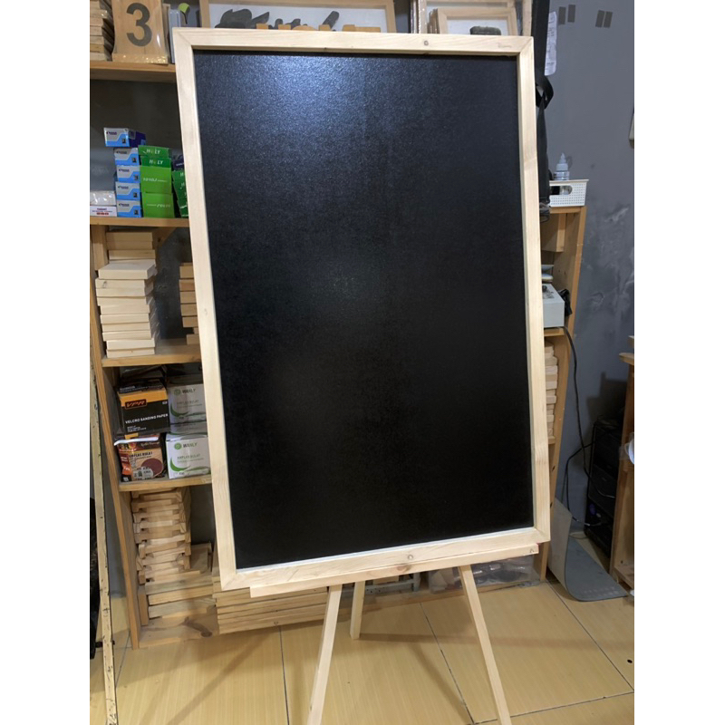 PAPAN TULIS KAPUR 60X90CM + STAND (Bonus Kapur 1 Box + Penghapus) papan tulis blackboard, papan tulis hitam
