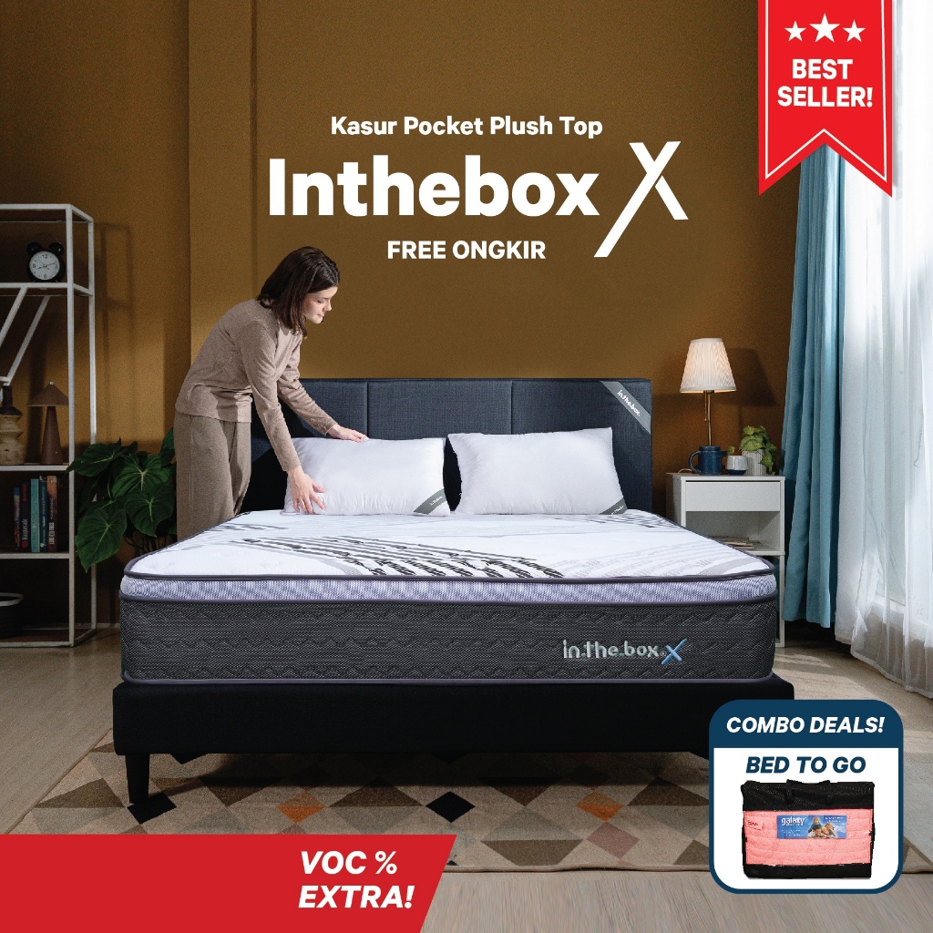 Kasur Busa Murah INTHEBOX (Plush Top) Kasur Spring Bed GRATIS Kasur Bed To Go+Bantal Kasur Busa In The Box Spring Bed