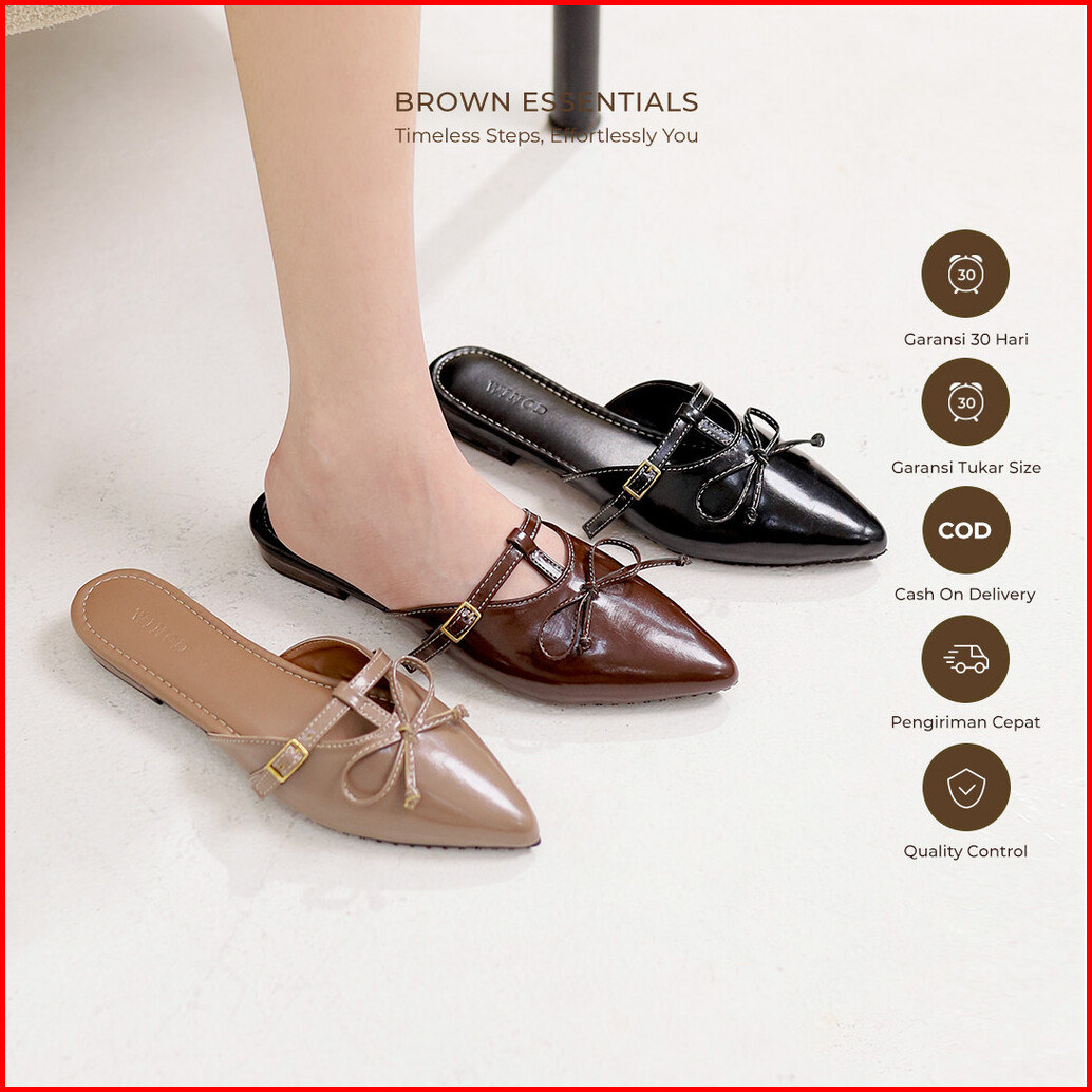 Winod Wilona Mules 2cm Sepatu Slip On Casual Brown Essentials Daily Raya Lebaran