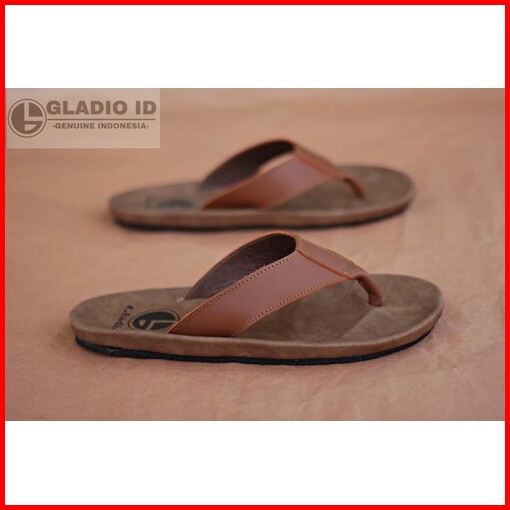 Sandal Jepit Slide Pria Gladio Footwear Aurora Coklat Kulit Premium