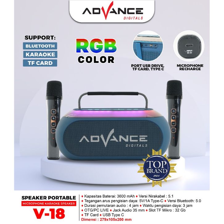 Advance Digitals Audio Speaker Advance V18 Portable Speaker Dual Microphone Karaoke