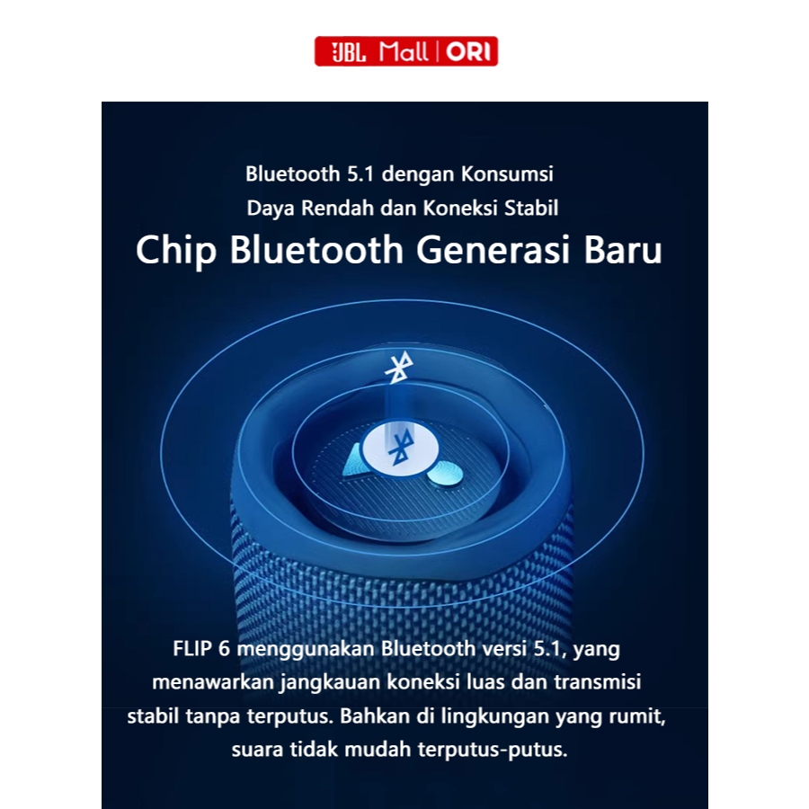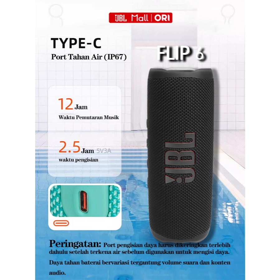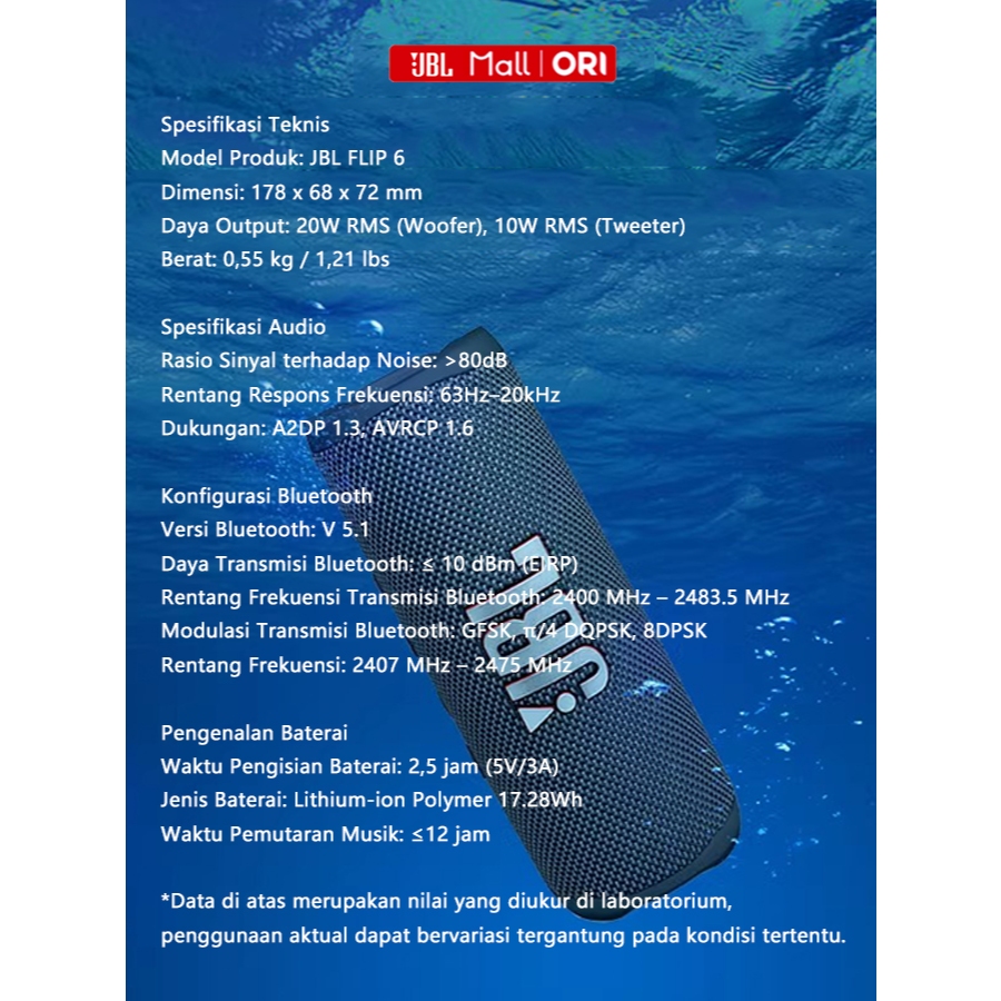 Original JBL Flip 6 Speaker Bluetooth Portable IPX7 Tahan Air | Bass Kuat, Suara Jernih 12H Playtime | Free Pouch & Cabl