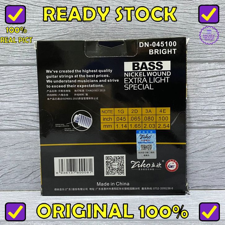 RK - Senar Bass Elektrik Ziko DN-045 4 String Nickel Hexangular Steel Core
