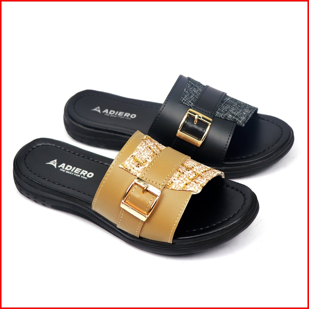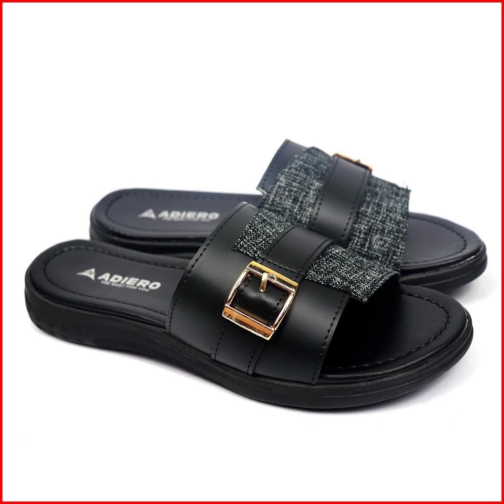 Adiero Sandal Wanita Kekinian Slop Rajut Hak Wedges Cewek