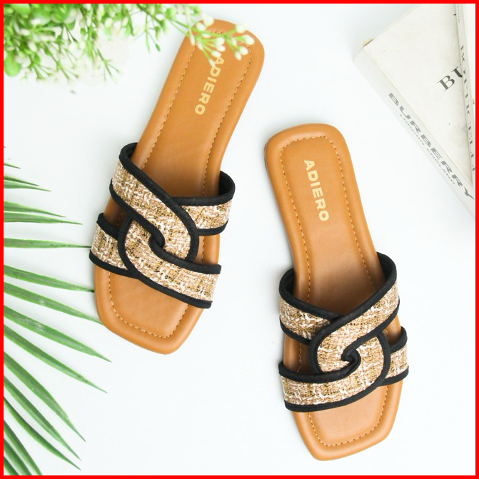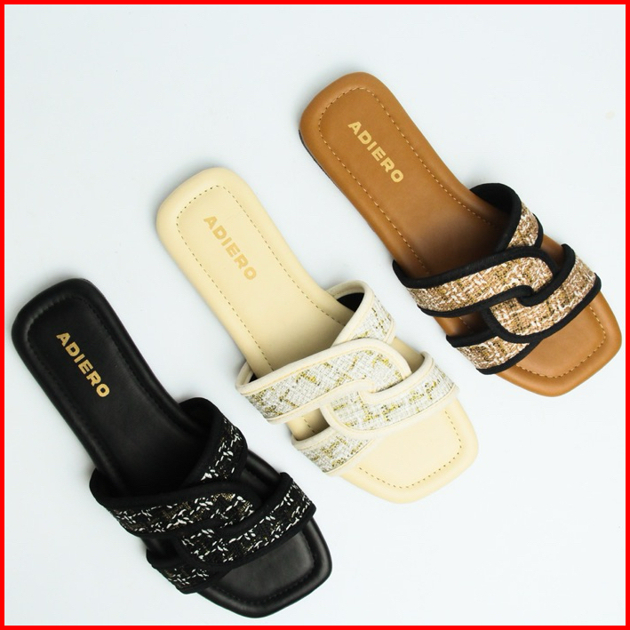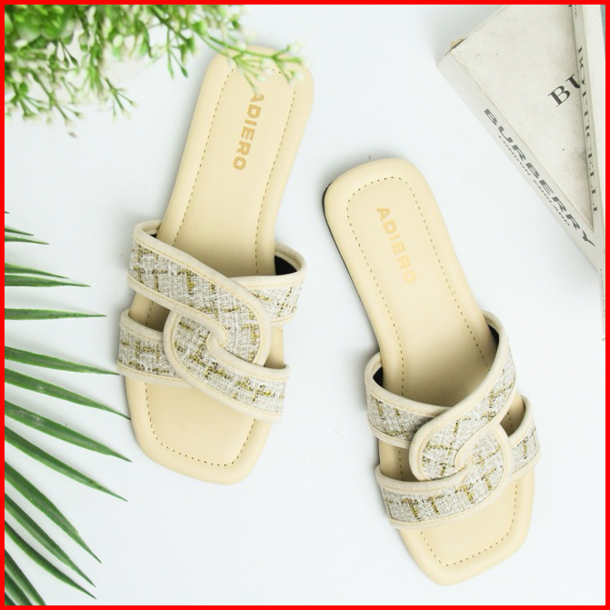 Adiero Sandal Wanita Kekinian Flat Sendal Cewek Korean Style Teplek