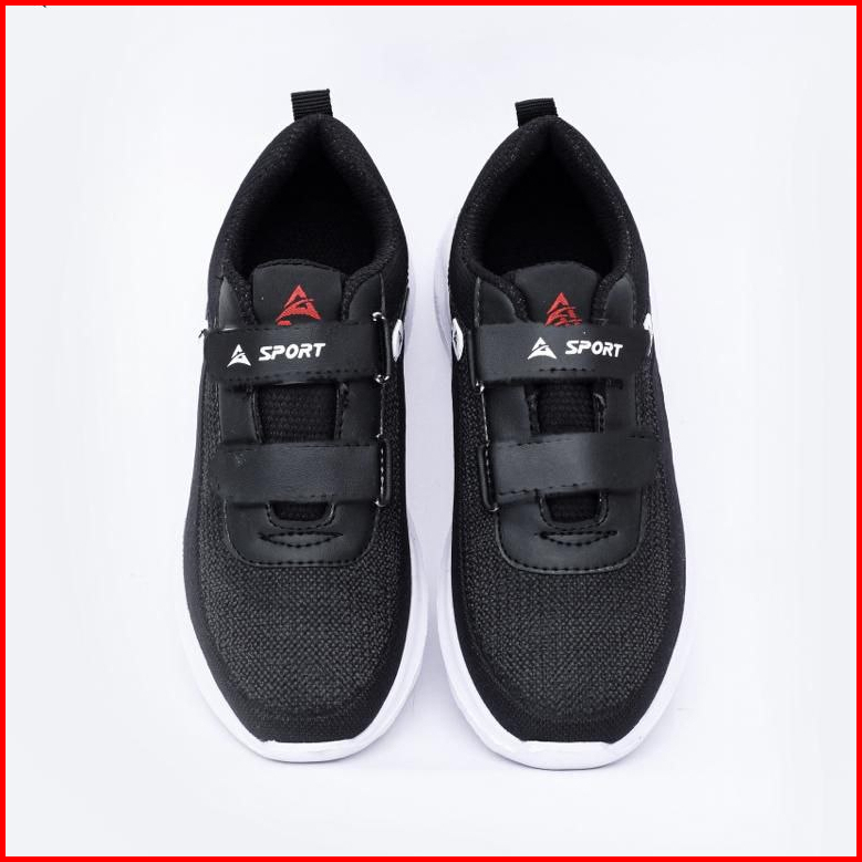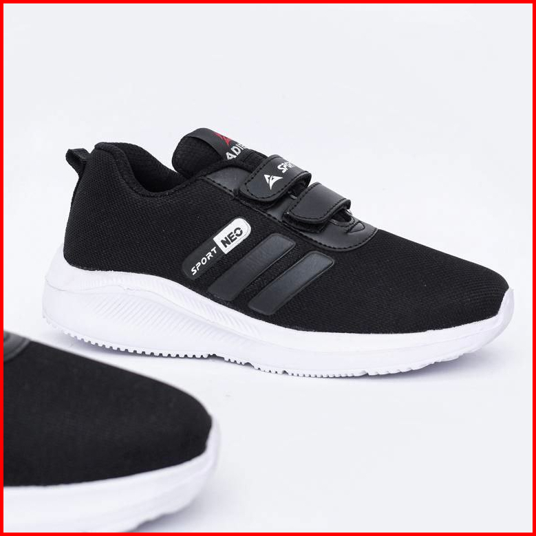 Adiero Sepatu Anak Sekolah Laki Perempuan Sneakers Velcro Original Warna Hitam Putih Size 28 - 40