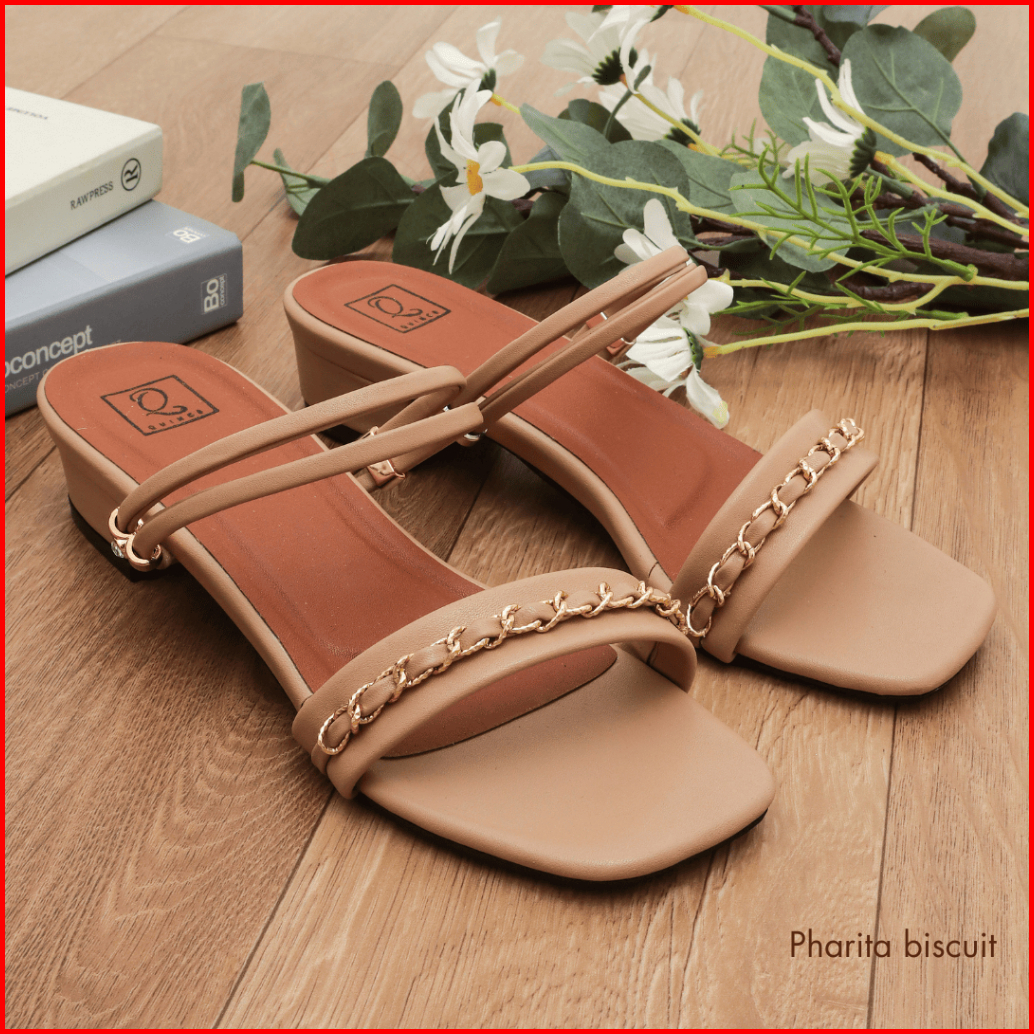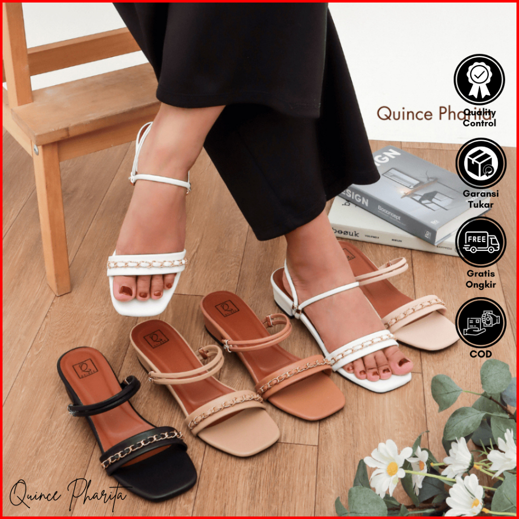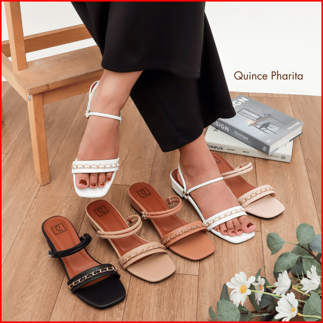 Quince Pharita Sandal Tali Wanita Heels Hak Chunky 3 Cm Double Strap