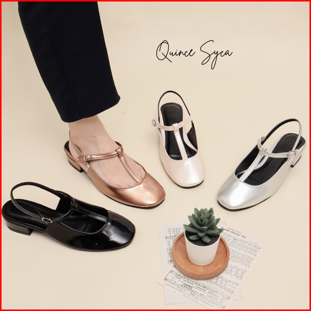 Quince Syca Sepatu Sandal Mules Wanita Hak 3 Cm