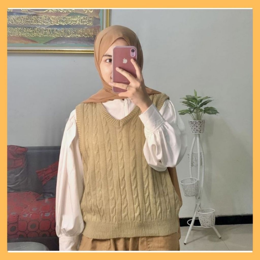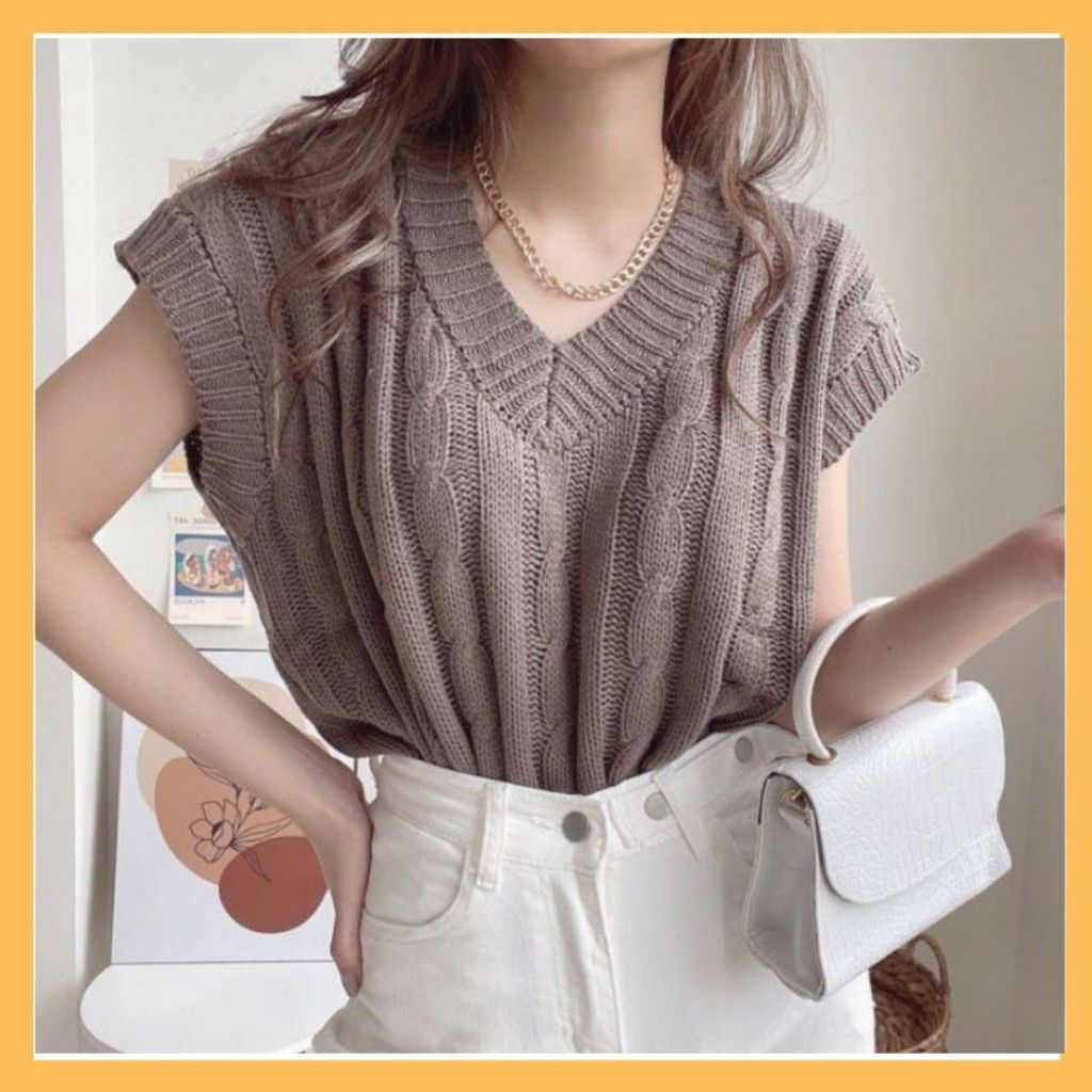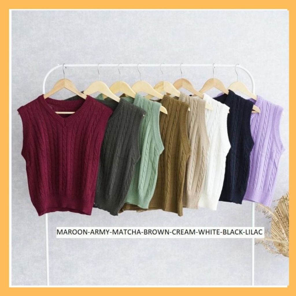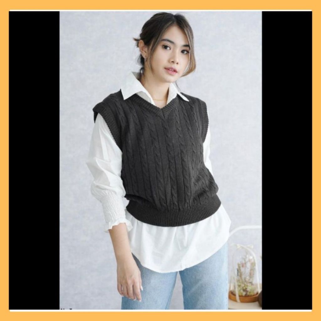 VEST ROMPI RAJUT CABLE / Vest Rajut Cable / Rompi Rajut Tali Kepang / Rompi Cable Rajut Wanita