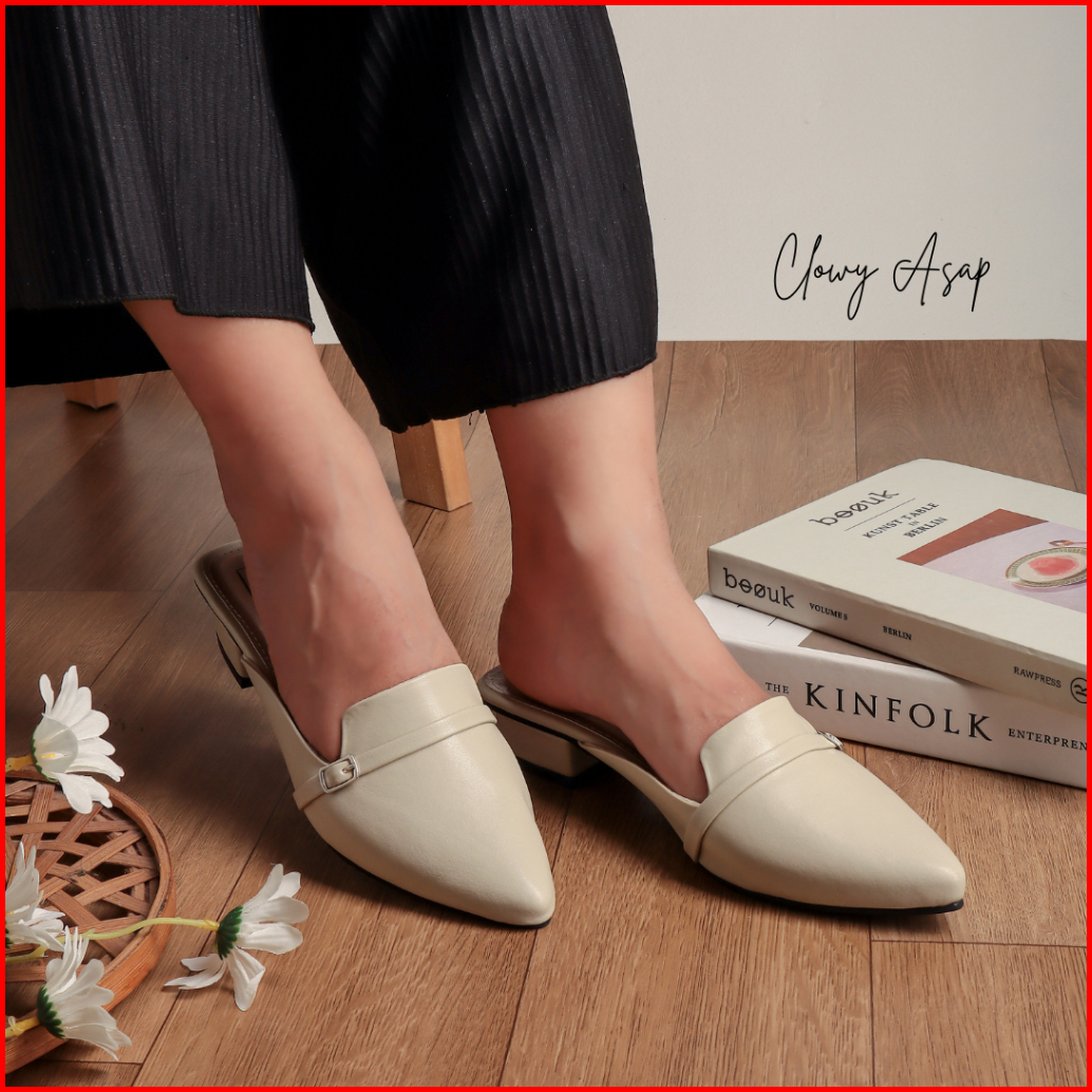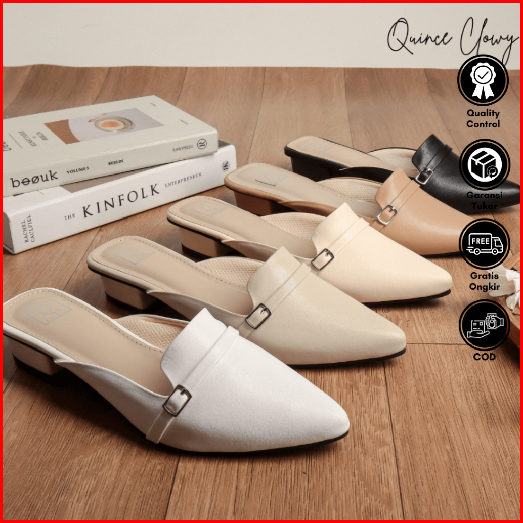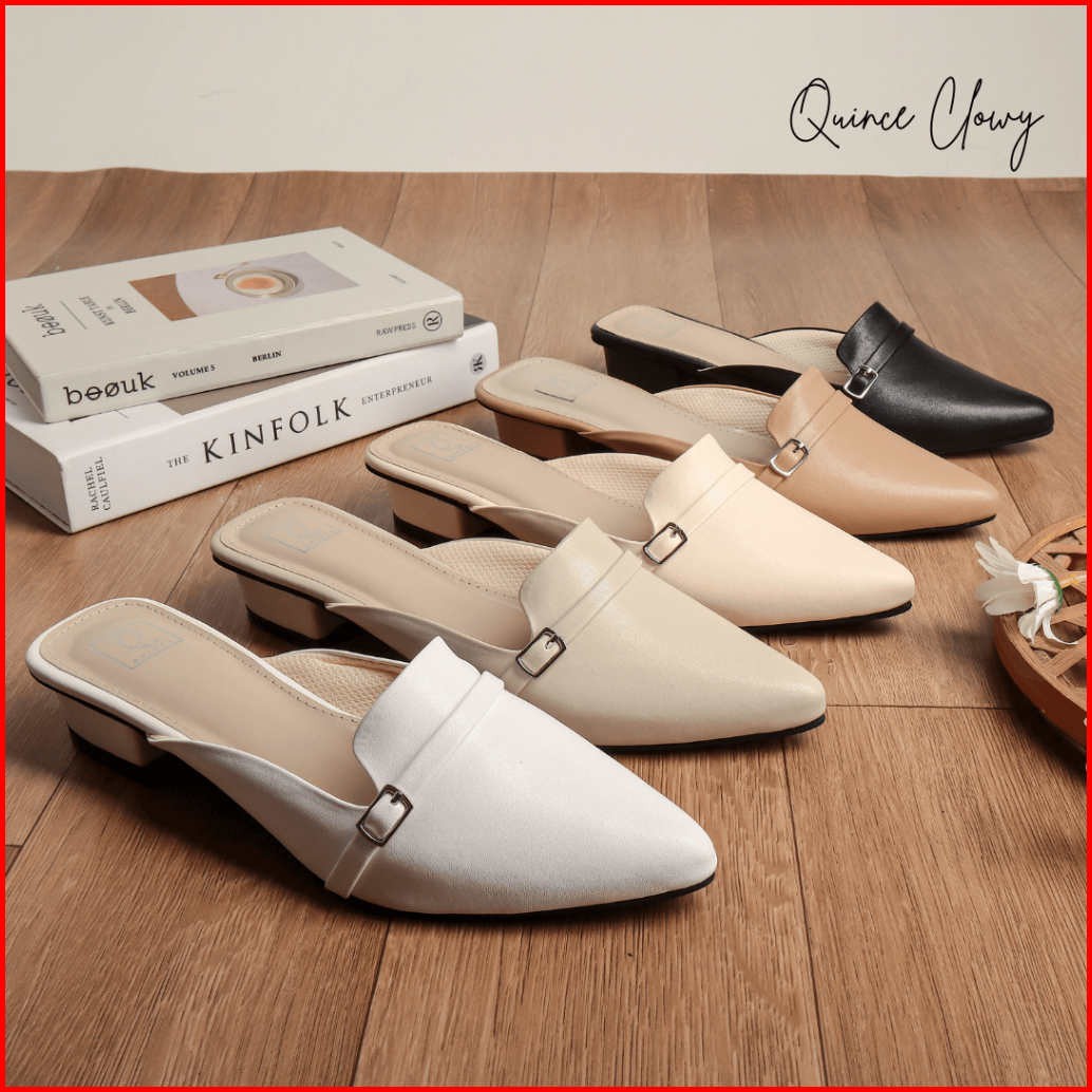 Quince Clowy Sandal Slop Wanita Mules Hak Tahu 3 Cm