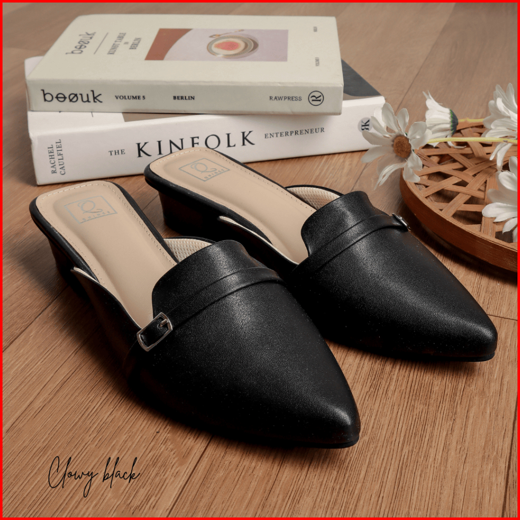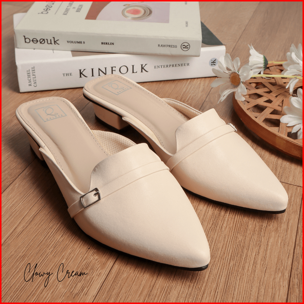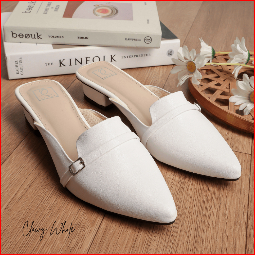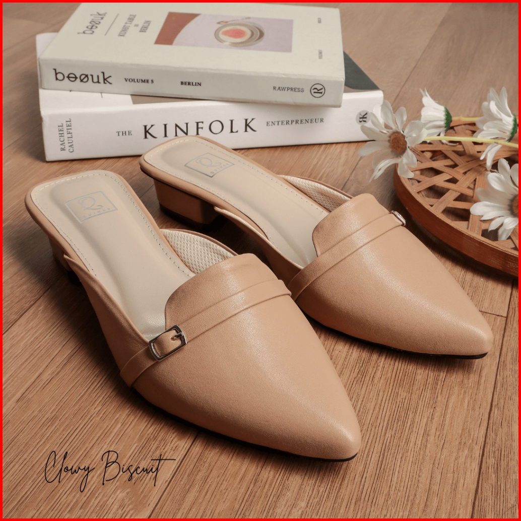 Quince Clowy Sandal Slop Wanita Mules Hak Tahu 3 Cm