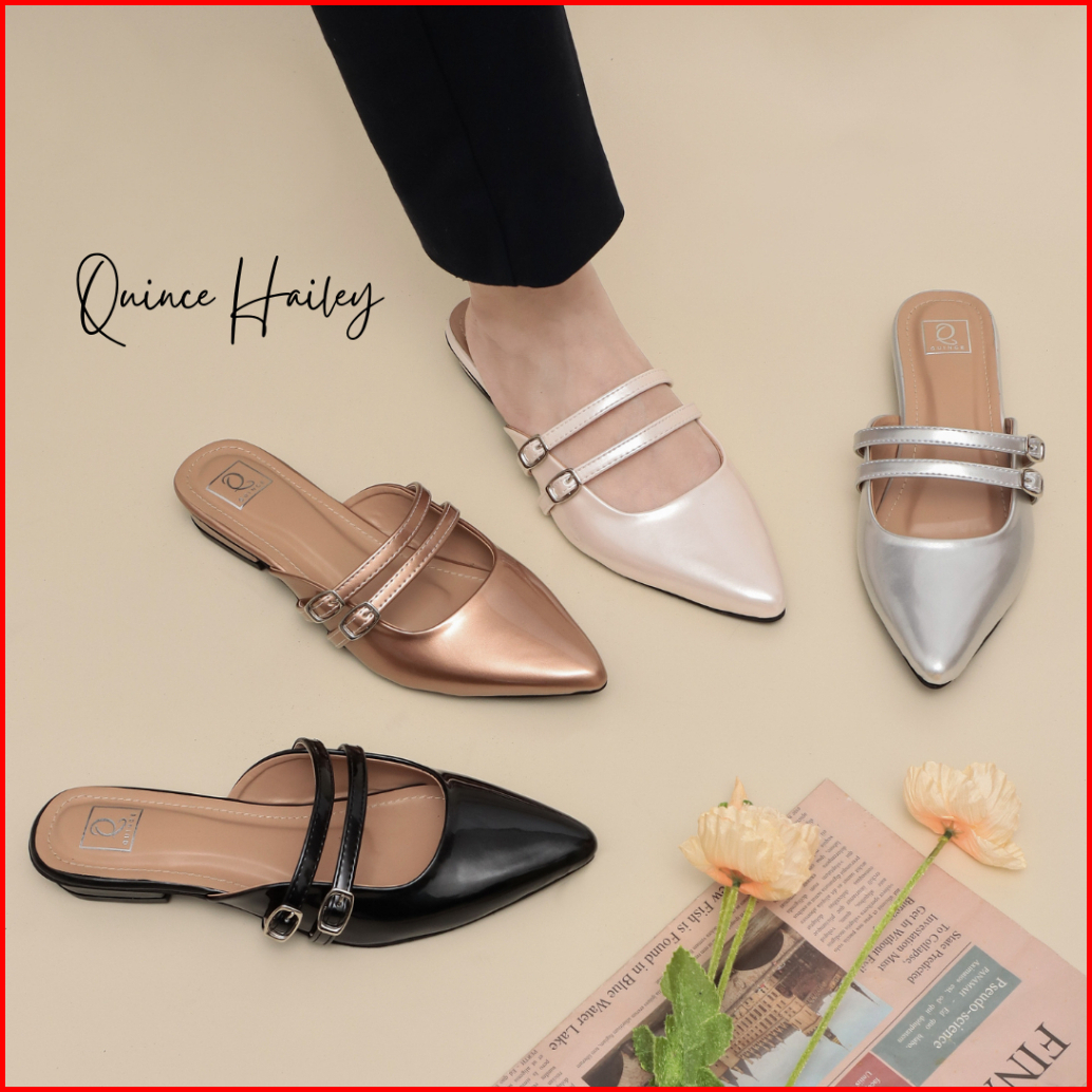 Quince Hailey Sandal Wanita Slip Mules Sendal Heels 2 Cm
