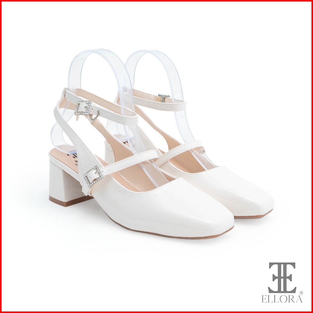 Ellora Eg-6458 Sepatu Pantofel Wanita Chunky Heels 6cm Ankle Strap Glossy
