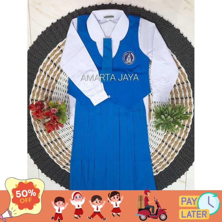 Baju sekolah SERAGAM PAUD DAN TK SETELAN CEWEK PANJANG SERAGAM SEKOLAH PGRI WARNA BIRU PUTIH BAJU BAHAN KATUN DELTA ROK