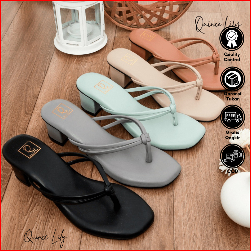 Quince Lily Sandal Heels Tali Wanita Hak 2 Cm