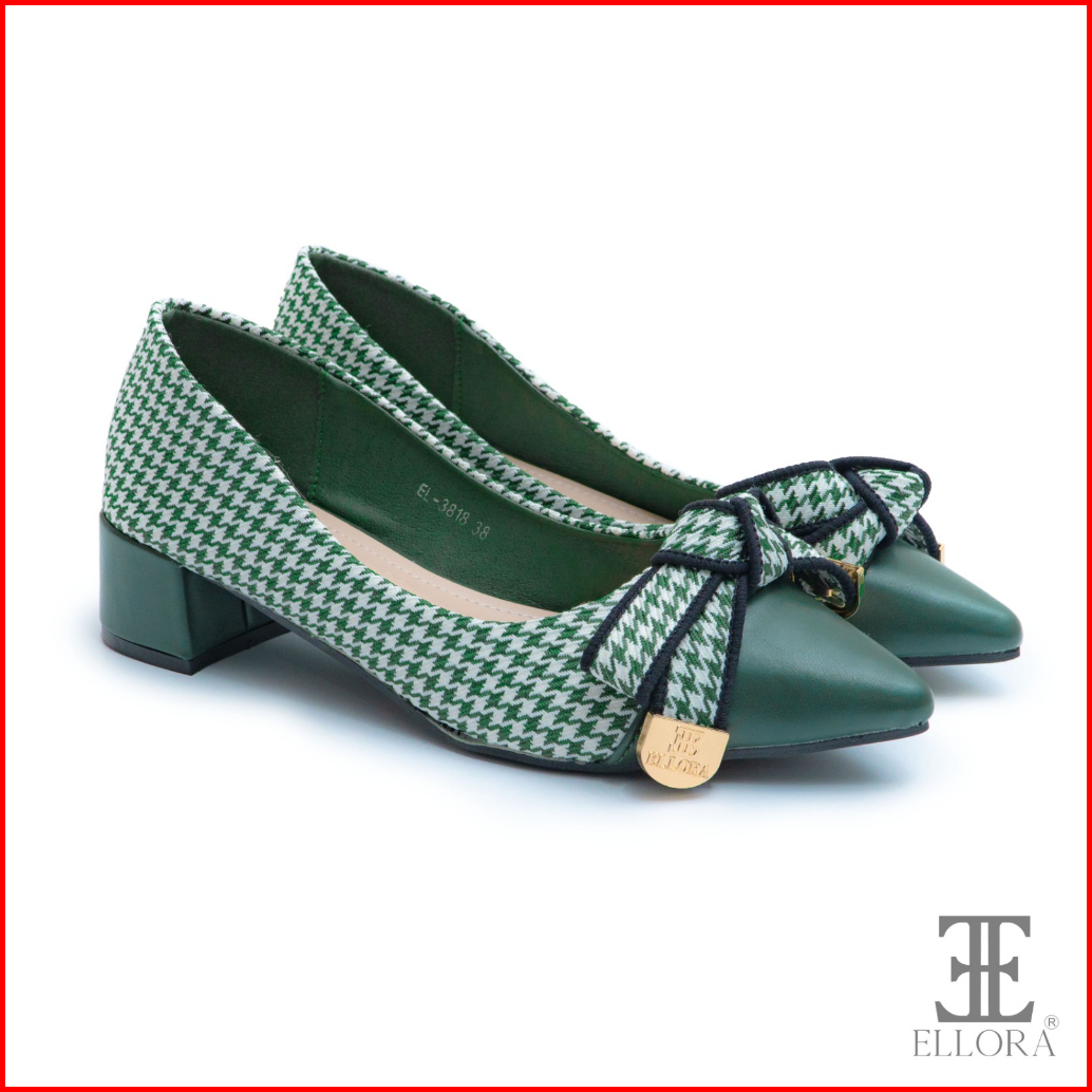 Ellora El-3818 Sepatu Kerja Wanita Hak Chunky Heels 4cm Import Bahan Woven