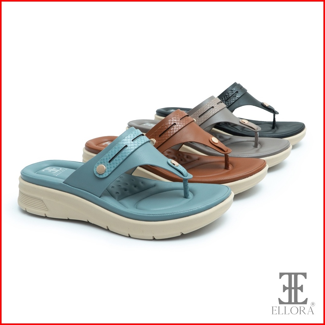 Ellora Ez-9223 Sandal Jepit Wanita Wedges 5cm Bahan Karet Import