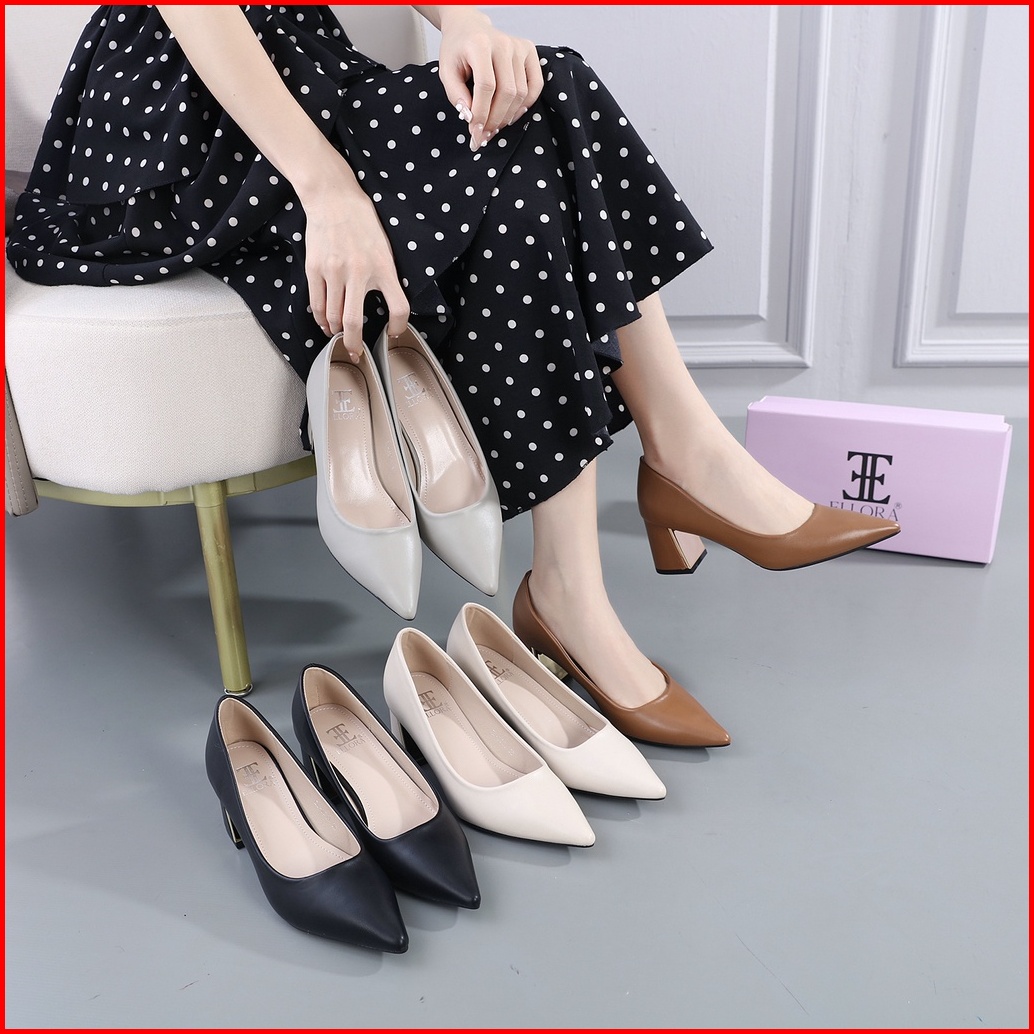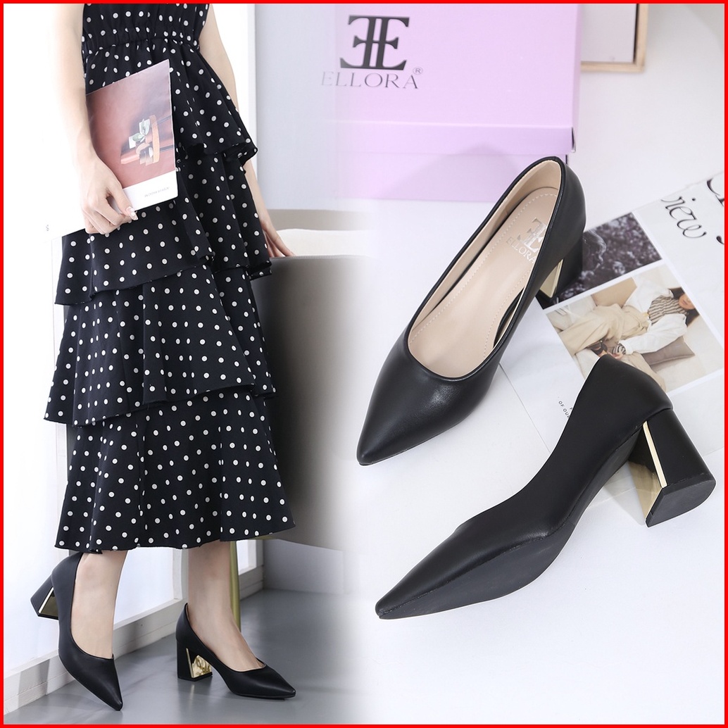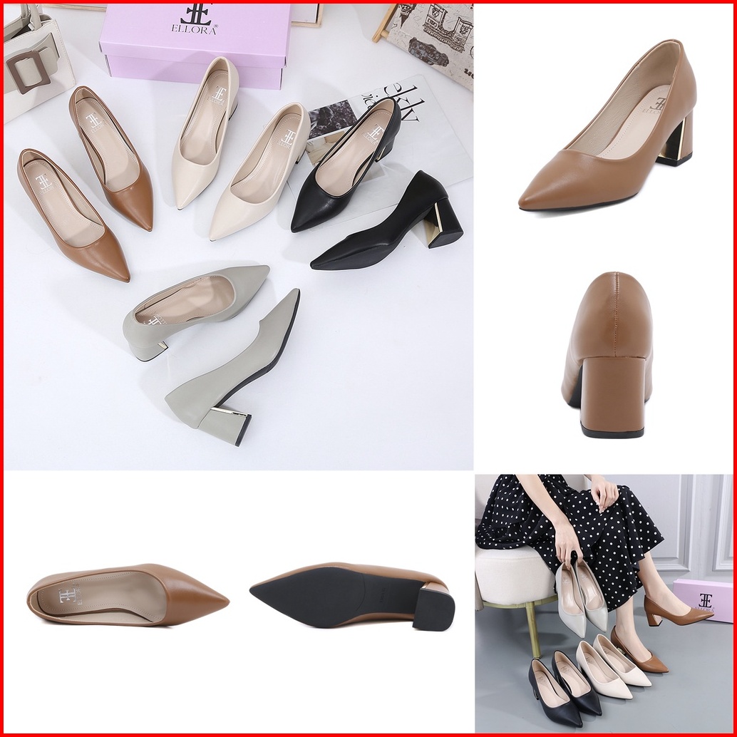 Ellora El-3600 Sepatu Hak Wanita Kerja Block Heels Import 6cm