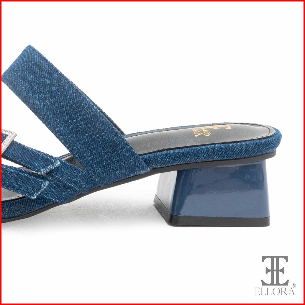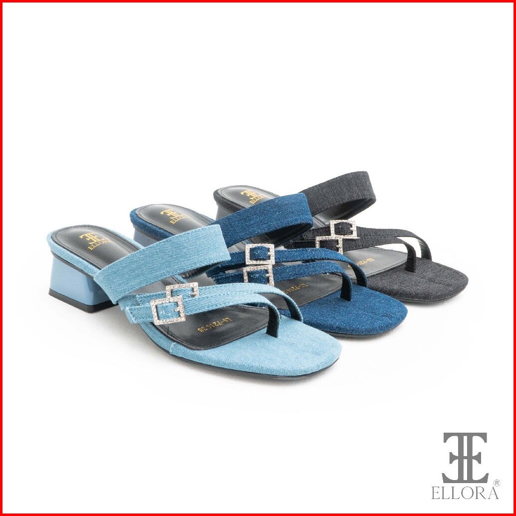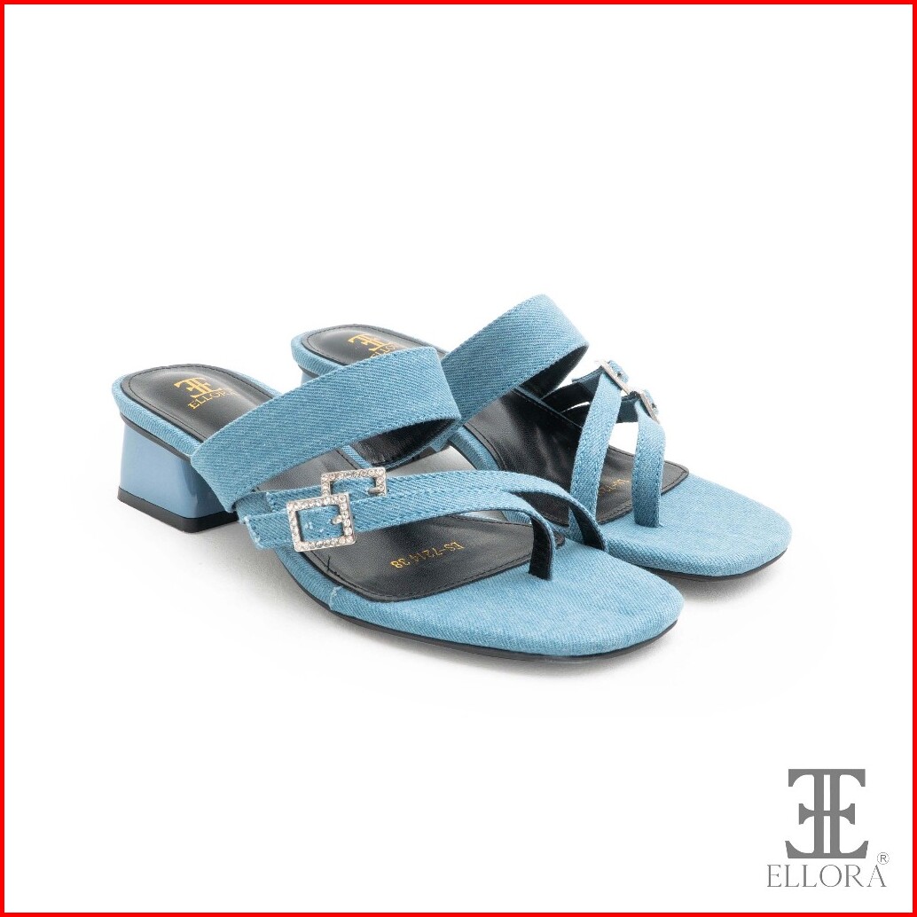 Ellora Es-7214 Sandal Wanita Hak Chunky 4.5cm Bahan Denim Import