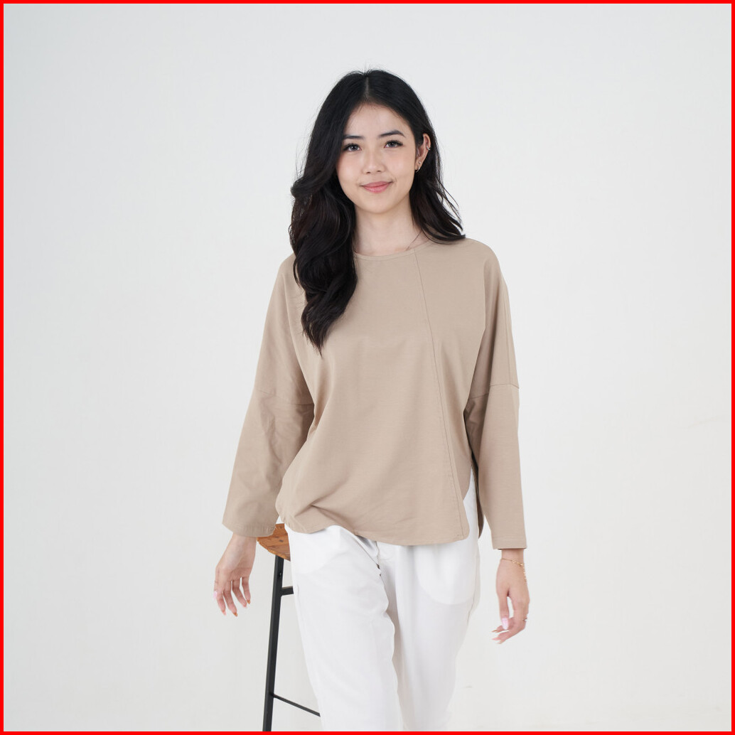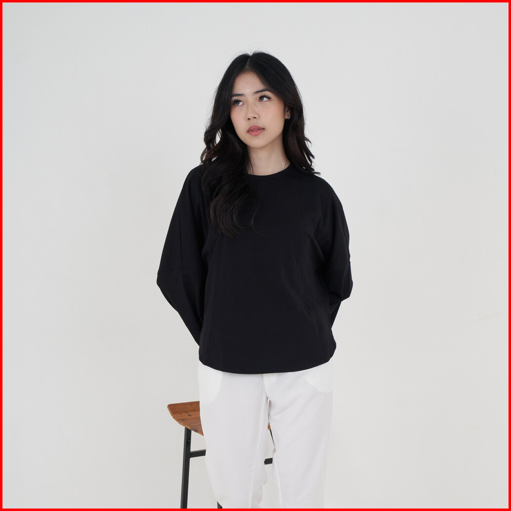 Queentin Kaos Wanita Oversize 0571 Combed Spandex Polos Lengan Panjang