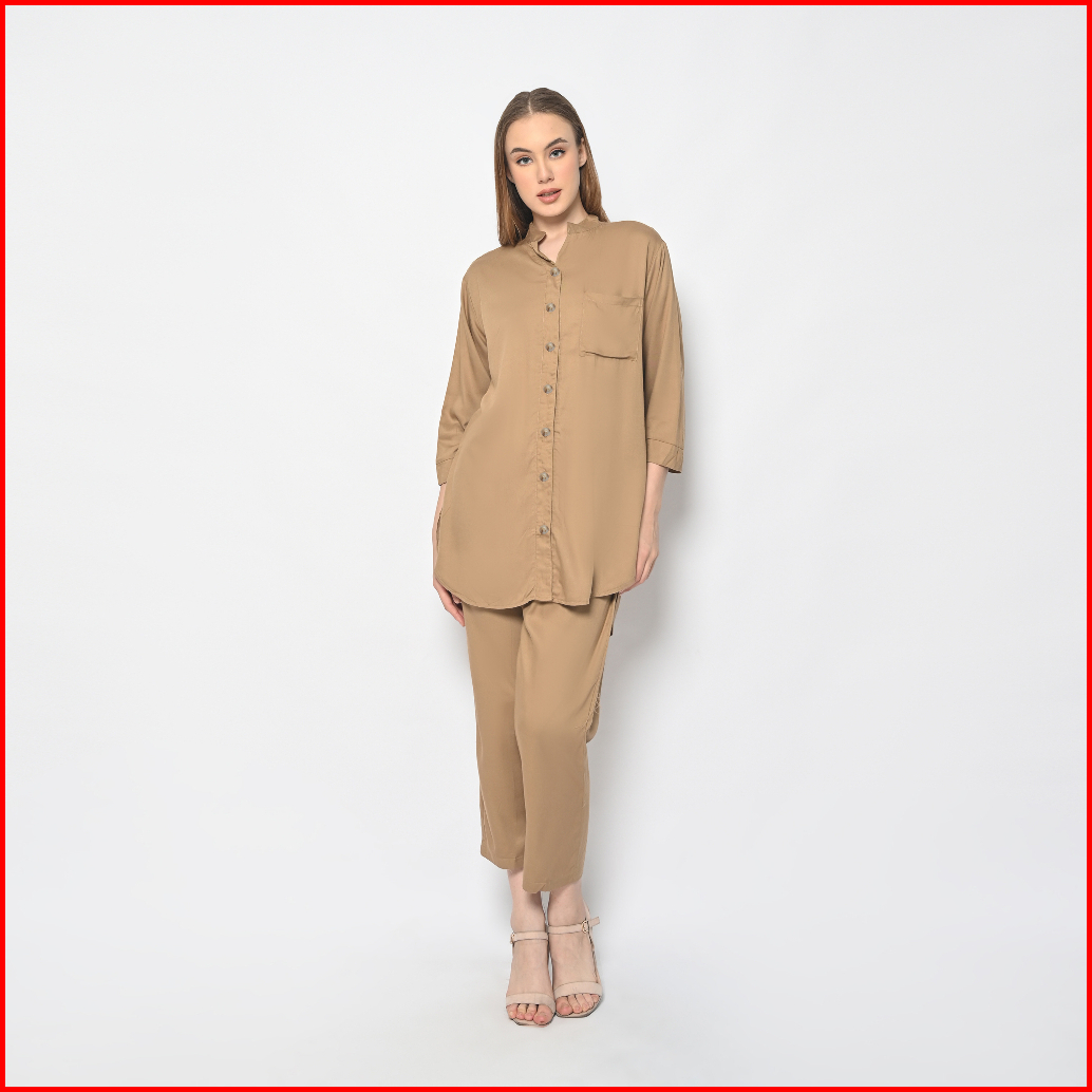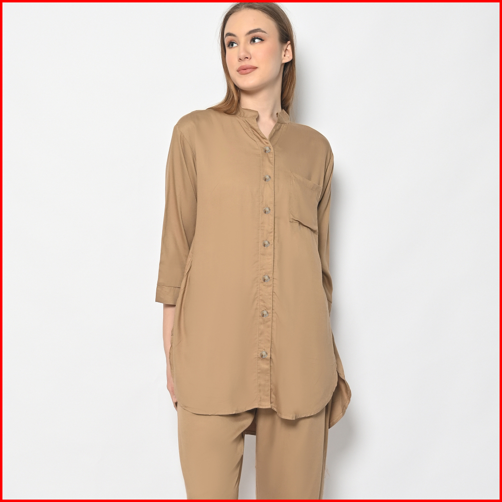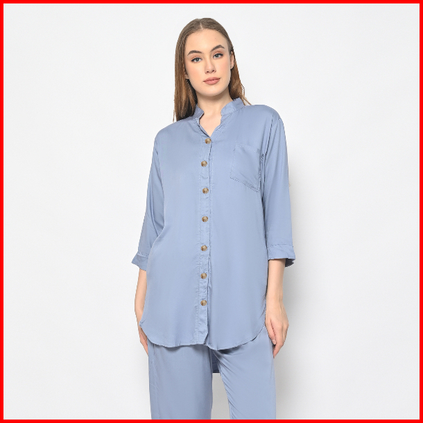 Queentin One-set 0086 Setelan Wanita Katun Rayon Twill Maxi Polos Lengan Panjang