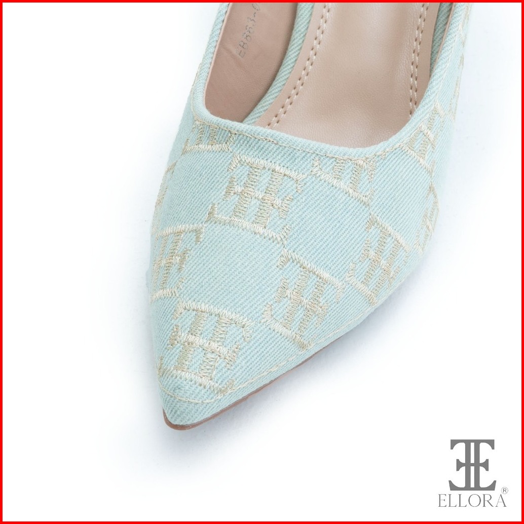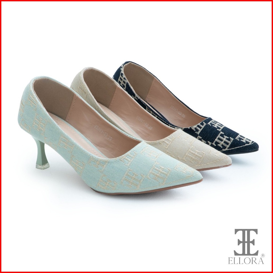 Ellora Eb 863-03 Sepatu Heels Wanita Kerja Import 7cm Bahan Denim