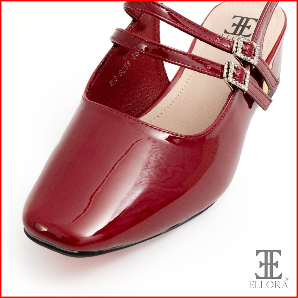 Ellora Eg-6258 Sandal Mary Jane Wanita Chunky Heels 5cm Ankle Strap Glossy